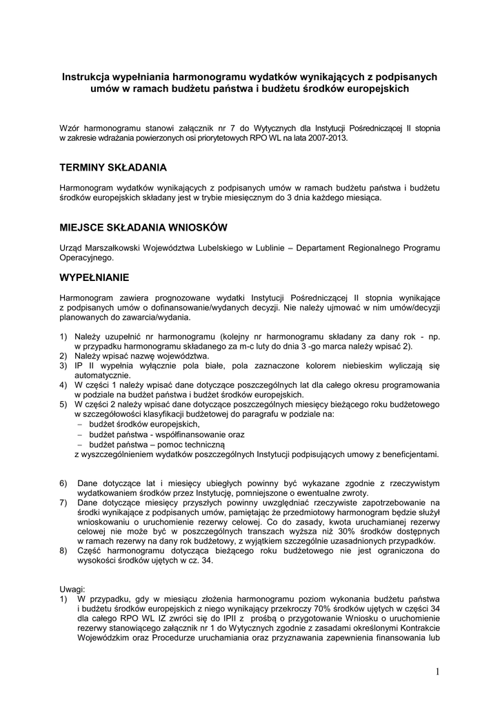 Instrukcja wypełniania harmonogramu wydatków wynikających z