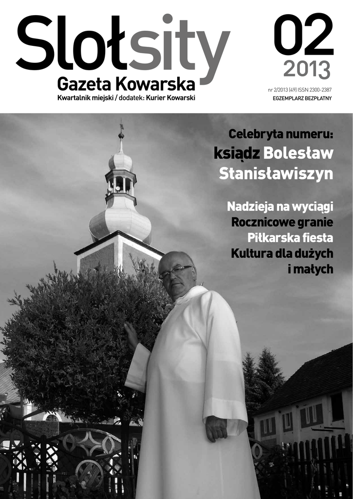 02 Slołsity Gazeta Kowarska Kwartalnik miejski / dodatek: Kurier Kowarski 2013 nr 2/2013 (49) ISSN 2300-2387 EGZEMPLARZ BEZPŁATNY Celebryta numeru: ksiądz Bolesław Stanisławiszyn Nadzieja na wyciągi Rocznicowe granie Piłkarska fiesta Kultura dla dużych i małych S l o łs i ty / n a p o Wstępniak Kowary mają więcej magnetycznych turystycznie miejsc niż pozostałe miejscowości Karkonoszy razem wzięte. Park Miniatur Zabytków Dolnego Śląska, podziemne trasy turystyczne czy niedawno otwarty Dom Kata przyciągają setki tysięcy turystów rocznie. W centrum nie widać jednak ruchu turystycznego, restauratorzy, jak narzekali, tak narzekają na zastój. Miasto ożywa jedynie za sprawą lokalnych imprez takich jak Powitanie Lata (relacja w środku numeru), jednak wtedy publikę stanowią miejscowi. Być może sytuację zmieni budowa Stacji Sportów Zimowych i Paralotniarstwa? Na razie wyciągi są tylko na papierze, ale jak piszemy w środku, dla inwestora zapaliło się zielone światełko. Czasem zasta- c z ą t e k nawiam się, czy nie warto wziąć się za naukę. Przydatnym językiem okazałby się czeski. W tym roku ilość polsko-czeskich (czytaj kowarsko-vrchablskich) imprez, szczególnie kulturalnych, jest imponująca. To zapewne za sprawą jubileuszy obu miast. W połowie czerwca starosta Vrchlabi Jan Sobotka zaprosił kowarzan na koncert muzyki poważnej, w gratisowym autokarze było jednak sporo wolnych miejsc. Polecam mieszkańcom Kowar wycieczkę do partnerskiego miasta. To nie tylko okazja do przeżycia wrażeń artystycznych, to okazja zobaczenia innej mentalności, ludzi, którzy mieszkają zupełnie blisko. Po drugiej stronie granicy trudno wypatrzyć bezpańskiego psa na ulicy, niby drobiazg a jednak. W tym numerze niecodziennie potraktowaliśmy materiał o celebrycie. Jest nim nietuzinkowy człowiek, który choć wybrał drogę kapłaństwa, doskonale poradziłby sobie w wielu innych profesjach. W kwartalniku ciężko pisać o sporcie, bo większość wydarzeń szybko się dezaktualizuje. W tym numerze wydarzenia sportowe szły w parze z cyklem wydawniczym. Zapraszam do lektury Jacek Kunikowski Slołsity Gazeta Kowarska SLOŁSITY GAZETA KOWARSKA kwartalnik miejski Redakcja: Jacek Kunikowski (red. nacz.), Agnieszka Jakubik, Dariusz Kaliński, Zbigniew Piepiora, Andrzej Weinke, Ewa Kubarko-Lewandowska (dział reklam) Wydawca: Miejski Ośrodek Kultury, ul. Szkolna 2, 58-530 Kowary tel./fax: 75 718 25 77; e-mail: [email protected]; www.gazeta.kowary.pl Layout, skład komputerowy: Wojciech Miatkowski Na okładce: ksiądz Bolesław Stanisławiszyn, fot. z arch. ks. Stanisławiszyna Druk: APLA Łomnica REKLAMA OKRĘGOWA STACJA KONTROLI POJAZDÓW tel. 75 643 92 33; www.juro-trans.com.pl czynne pon.– pt., 7:00–19:00, w soboty 8:00–14.00 Świadczymy usługi: • Przeglądów rejestracyjnych wszystkich rodzajów pojazdów • Pierwszych przeglądów rejestracyjnych pojazdów sprowadzonych do kraju • Badań powypadkowych • Zmian rodzaju pojazdu • Obsługujemy pojazdy: osobowe, dostawcze, ciężarowe (specjalizacja RVI) oraz naczepy • Pracujemy na urządzeniach MAHA • Oferujemy fachowe doradztwo przy zakupie samochodów SERWIS SAMOCHODÓW OSOBOWYCH I CIĘŻAROWYCH czynne pon.– pt. 8:00–18:00, w soboty 8:00–14.00 Świadczymy usługi: • diagnostyka komputerowa (osobowe i ciężarowe) • ustawienie geometrii kół (osobowe i ciężarowe) • kompleksowy serwis klimatyzacji samochodowych • wymiana płynów eksploatacyjnych • naprawa zawieszenia • naprawa układu hamulcowego • naprawa układu kierowniczego • naprawy instalacji elektrycznych • układy wydechowe • NOWOŚĆ: instalacja LPG (auto-gaz) • NOWOŚĆ: usługi wulkanizacyjne. SPRZEDAŻ CZĘŚCI ZAMIENNYCH I AKCESORIÓW MYJNIA BEZDOTYKOWA – bezpieczne i skuteczne mycie samochodu. JURO-TRANS Kowary, ul. Zamkowa 9, tel. 75 643 96 55, 695 200 203 www.juro-trans.com.pl, [email protected] S l o łs i ty / w kilk u s ł o w a ch Dekada współpracy K owarska Szkoła Podstawowa Nr 1 już dziesięć lat współ- pracuje z zaprzyjaźnioną placówką z niemieckiego miasta Zernsdorf. W połowie maja grupa z Niemiec przez tydzień gościła pod Karkonoszami. Bazą pobytu była szkoła podstawowa w Ścięgnach, która dysponuje zapleczem noclegowym. Uczniowie zaprzyjaźnionych szkół brali udział we wspólnym programie dydaktycznym. Organizatorzy przygotowali dla uczestników wymiany atrakcyjny program. Dzieci zwiedzały między innymi Park Miniatur Zabytków Dolnego Śląska i podziemne trasy turystyczne w ko- warskich sztolniach. Uczestnicy wymiany odwiedzili również kowarski ratusz i spotkali się z samorządowcami, co było elementem oficjalnego podkreślenia dziesięcioletniej współpracy. Uczniowie wykonywali również prace plastyczne, pod okiem Romana Tryhubczaka tworzyli herby swoich miast. – Udział w wymianie jest formą nagrody dla najzdolniejszych uczniów – mówi dyrektorka kowarskiej jedynki Małgorzata Krysiak. – Dzieci bardzo szybko nawiązują ze sobą dobre relacje, przeszkodą nie jest nawet bariera językowa. Jedno popołudnie młodzi Niemcy gościli w polskich domach. Gospodarze nie ograniczali się tylko do prezentowania polskiej kuchni. Gospodarze często chcieli pokazać atrakcyjne miejsca, których nie było w oficjalnym programie. Młodym Niemcom podobał się Dom Kata. Przy okazji wymiany okazało się, że rówieśnicy z obu krajów mają podobne zainteresowania. Chłopcy lubią kopać piłkę i gry komputerowe, dziewczęta śledzą trendy mody. Rewizyta zaplanowana jest na wrzesień. (jk) REKLAMA 3 S l o łs i ty / S z a ns a dl a mi a s t a Nadzieja na wyciągi W środę 8 maja w auli Miejskiego Ośrodka Kultury odbyła się rozprawa administracyjna w sprawie planowanej budowy Stacji Sportów Zimowych i Paralotniarstwa. Stronami byli inwestor, Karkonoski Park Narodowy, Nadleśnictwo „Śnieżka” oraz naukowcy z Uniwersytetu Wrocławskiego. Nie zj