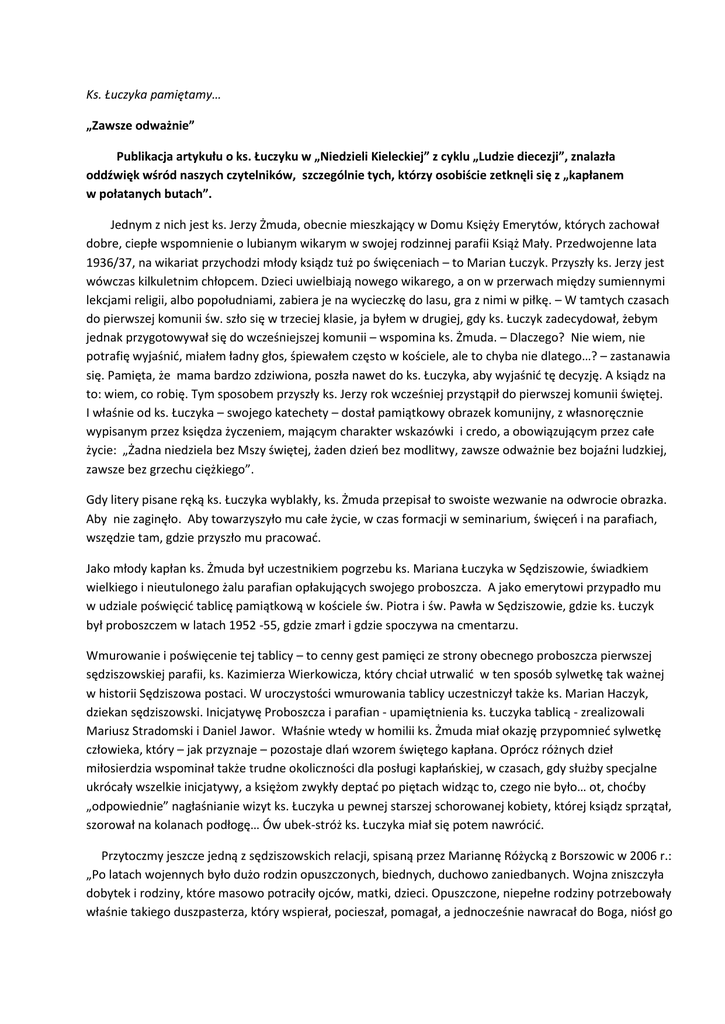 Ks. Łuczyka pamiętamy… „Zawsze odważnie” Publikacja artykułu o