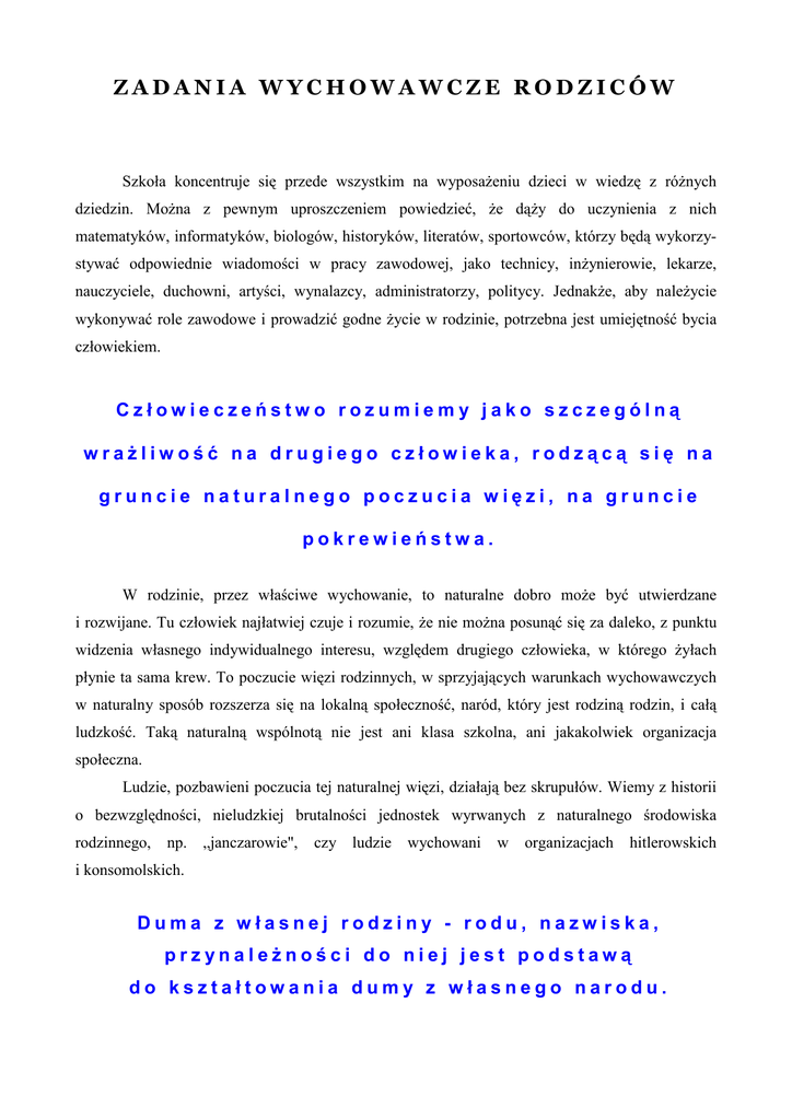 ZADANIA WYCHOWAWCZE RODZICÓW