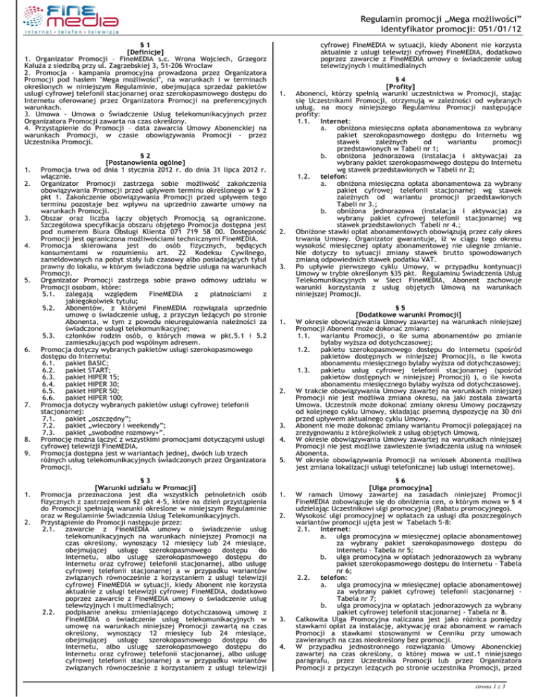 1. Organizator Promocji – FineMEDIA s.c. Wrona Wojciech, Grzegorz