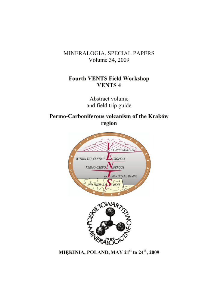 MINERALOGIA, SPECIAL PAPERS Volume 34, 2009 Fourth VENTS Field Workshop VENTS 4 Abstract volume and field trip guide Permo-Carboniferous volcanism of the Kraków region MIĘKINIA, POLAND, MAY 21st to 24th, 2009 Mineralogia – Special Papers – continuation of Mineralogia Polonica – Special Papers Editor of the series – Marek Michalik Institute of Geological Sciences, Jagiellonian University 30-063 Kraków, ul. Oleandry 2a, Poland [email protected] Editors of Volume 34: Anna LEWANDOWSKA, Mariusz ROSPONDEK Institute of Geological Sciences, Jagiellonian University 30-063 Kraków, ul. Oleandry 2a, Poland [email protected] Technical Editor: Anna LEWANDOWSKA The Fourth VENTS Field Workshop and the issue of the volume 34 of “Mineralogia – Special Papers” were organized with financial support of the Ministry of Science and Higher Education and German Research Foundation (DFG) ISSN: 1899-8518 Printed: Wydawnictwo Naukowe „Akapit”, Kraków tel./fax (012) 280-71-51; kom. 608 024 572 e-mail: [email protected]; www.akapit.krakow.pl VENTS 4 Permo-Carboniferous volcanism of the Kraków region organized by Mineralogical Society of Poland together with: Institute of Geological Sciences, Jagiellonian University, Kraków Institute of Geology, Adam Mickiewicz University, Poznań Institute of Geological Sciences, University of Wrocław Institute of Geochemistry, Mineralogy and Petrology, University of Warsaw Institut für Geologie, Technische Universität Bergakademie Freiberg MIĘKINIA, POLAND, MAY 21st to 24th, 2009 Organizing Committee: Anna LEWANDOWSKA Christoph BREITKREUZ Ewa SŁABY Andrzej MUSZYŃSKI Marek AWDANKIEWICZ Mariusz ROSPONDEK Beata ZYCH-HABEL We would like to express special thanks to Prof. Raymond Macdonald and Prof. Pádhraig Kennan for correcting the English manuscripts CONTENTS CONTRIBUTIONS Marek AWDANKIEWICZ, Honorata AWDANKIEWICZ, Ryszard KRYZA, Nickolay RODIONOV, Martin TIMMERMAN Ar-Ar and SHRIMP constraints on the age of Late Palaeozoic intermediate and silicic dykes and sills in the Sudetes ............................................................ 9 Marek AWDANKIEWICZ, Norbert SZCZEPARA Structure, textures, petrography and mineral chemistry of the Wielisławka rhyolites (Permian), the North-Sudetic Basin ................................................... 10 Marek AWDANKIEWICZ, Michał SZYMAŃSKI New data on the structure, emplacement mode and post-magmatic alteration of the Grzędy trachyandesites (Lower Permian), the Intra-Sudetic Basin ........ 11 Christoph BREITKREUZ, Bodo-Carlo EHLING, Ivo RAPPSILBER Geometric modeling of intermediate subvolcanic bodies in the Late Paleozoic Halle Volcanic Complex, Germany.................................................. 12 František V. HOLUB Volcanic infilling of S part of the Altenberg-Teplice Caldera; ~700 m deep vertical profile through ignimbrites .................................................................. 14 Anna LEWANDOWSKA, Mariusz ROSPONDEK, Jerzy NAWROCKI The geochemistry of volcaniclastic rocks associated with basaltic trachyandesites in the Nieporaz-Brodła graben near Kraków, Southern Poland.................................................................................................. 15 Anna LEWANDOWSKA, Mariusz PASZKOWSKI, Michał GRADZIŃSKI, Marek DULIŃSKI, Jerzy NAWROCKI Michał ŻYWIECKI Permian hydrothermal karst in the Kraków region, Southern Poland ................ 17 Mariola MARSZAŁEK, Jerzy CZERNY Amphibole phenocrysts and their alteration in rhyodacitic porphyries from Zalas near Kraków .............................................................................................. 18 Monika NOWAK, Michał JANKOWIAK, Joanna NAWROCKA, Andrzej MUSZYŃSKI Pulses of volcanic activity at Wołek Hill, Kaczawa Mountains – an example of multiphase volcanic events associated with an old tectonic dislocation ........ 19 Vladislav RAPPRICH, Marcela STÁRKOVÁ, Christoph BREITKREUZ Eruptive styles of monogenetic volcanism in the Levín Volcanic Complex – central part of the Krknoše Piedmont Basin (Rotliegend / Autunian) .............. 20 Mariusz J. ROSPONDEK, Anna LEWANDOWSKA, Leszek MARYNOWSKI Fate of organic matter during contact metamorphism induced by Permian magmatic activity in the Dębnik Anticline, Southern Poland ........................... 22 5 Ewa SŁABY, Andrzej DOMONIK, Michał ŚMIGIELSKI Self-organized complexity of crystal growth from heterogeneous magmas .................................................................................................... 24 Marcela STÁRKOVÁ, Vladislav RAPPRICH Westphalian volcanic activity south of The Teplice-Altenberg caldera, Central and Western Bohemian Basins .............................................................. 25 Agnieszka STEFANIAK Petrological and sedimentological analysis of volcaniclastic Permian rocks with reference to volcanic series, Western Wielkopolska .................................. 28 Norbert SZCZEPARA The origin of selected volcanic deposits from Grotta dei Pisani, Vulcano the Aeolian Islands ............................................................................................. 29 Anna WOLSKA, Ewa KOSZOWSKA Thermal action of Pilica granodiorite intrusion on cover sedimentary rocks, Southern Poland.................................................................................................. 30 Anna WOLSKA Enclaves in granodiorite intrusions from the Paleozoic basement of the Silesian-Kraków area, Southern Poland............................................................ 32 FIELD TRIPS Introduction to field trip .......................................................................................... 37 Mariusz PASZKOWSKI Paleozoic successions along the Upper Silesia - Małopolska Terranes border .. 37 Joachim SZULC Early Permian paleoenvironments ...................................................................... 42 Anna LEWANDOWSKA Late Carboniferous – Early Permian magmatic rocks of the Krak