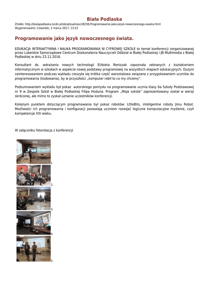 Biała Podlaska Programowanie jako język nowoczesnego świata.