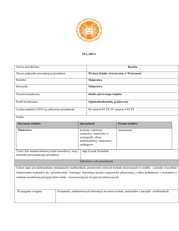 SYLABUS Nazwa przedmiotu: Rzeźba Nazwa jednostki