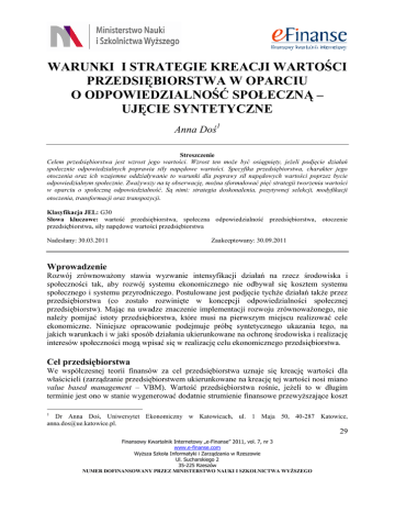 warunki i strategie kreacji wartości przedsiębiorstwa w - e