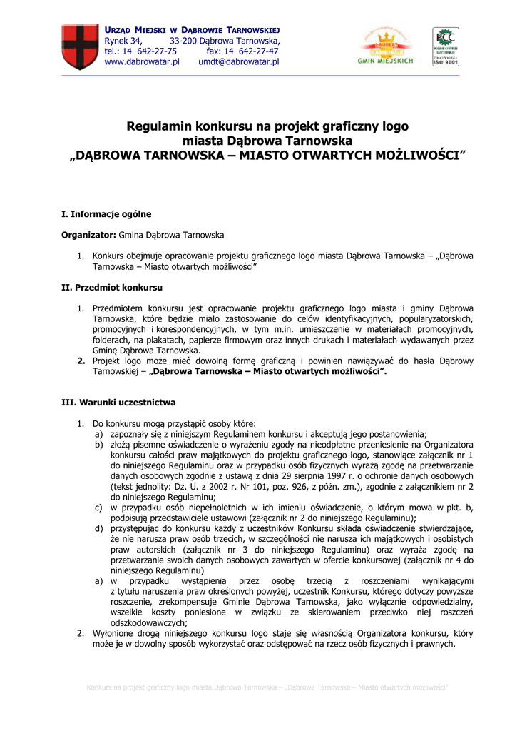 Regulamin konkursu na projekt graficzny logo miasta Dąbrowa