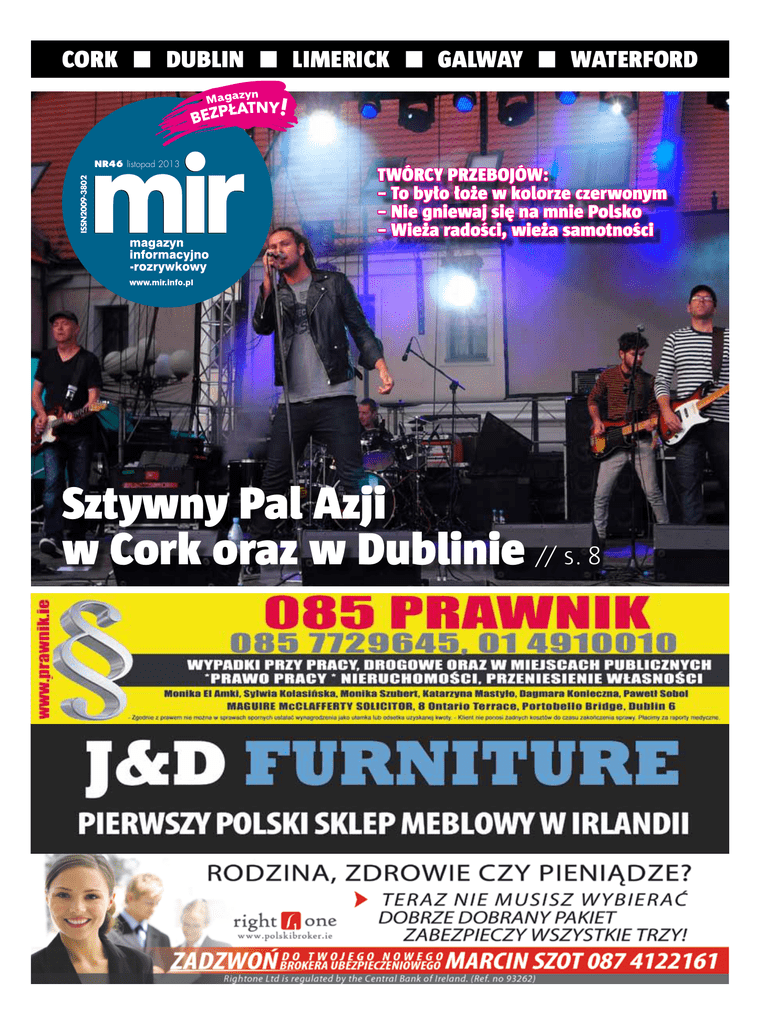 CORK n DUBLIN ISSN2009-3802 NR46 listopad 2013 n LIMERICK n GALWAY n WATERFORD Sztywny Pal Azji TWÓRCY PRZEBOJÓW: w Cork – To było łoże w kolorze czerwonym – Nie gniewaj się na mnie Polsko oraz w Dublinie – Wieża radości, wieża samotności // s. 8 Sztywny Pal Azji w Cork oraz w Dublinie // s. 8 W OBIE STRONY ¬¬ Biblioteki bez książek s. 4-5 polityka ¬¬ Twój głos to obowiązek, nie prawo s. 6 4 rozrywka Sztywny Pal Azji 8 styl życia „BANG POLAND” s. 10 ¬¬ ¬¬ zdrowie Jaki wiek – taki lęk, czyli o lękach u dzieci s. 11 ¬¬ 8 10 przybornik Od listopada drożeje komunikacja miejska s. 12 ¬¬ Zmiana w polskich dowodach osobistych s. 12 ¬¬ „Babushka Boxes” s. 13 ¬¬ Zmiany w liniach lotniczych Ryanair s. 13 ¬¬ Osoby poszukujące pracy i praca sezonowa s. 13 ¬¬ Będzie się działo Zapowiedzi koncertów s. 14-15 ¬¬ 12 rozrywka ¬¬ Czytelnia ¬¬ Krzyżówka ¬¬ Horoskop ¬¬ Uśmiechnijj się s. 16 s. 17 s. 17 s. 17 kącik kulinarny To co wy jecie!? s. 18 ¬¬ sport Nawałka bierze kadrę s. 20 ¬¬ turystyka Odlotowe stewardesy s. 22 ¬¬ 22 od redakcji: Drodzy Czytelnicy, kiedy do Waszych rąk trafia kolejny numer MIR-a jest już połowa listopada, drzewa pozbyły się liści, kominki w domach grzeją pełną parą, wiatr wygania spacerowiczów z parków i plaż, a słynny irlandzki deszcz pada czasami poziomo. Ogólnie pogoda nie napawa optymizmem, ale to nie znaczy, że mamy pogrążyć się w rozpaczy i depresji. Od czego w końcu macie nasz magazyn, w którym każdy znajdzie dla siebie coś ciekawego, coś pozytywnego, słowem – coś, co wprowadzi go w dobry nastrój. Może listopad to właśnie dobry czas na powspominanie wakacyjnych wypraw, wycieczek bliższych i dalszych, urlopów czy chociażby spotkań ze znajomymi przy grillu. Przecież jeszcze tak niedawno cieszyliśmy się niezwykłym jak na tę wyspę latem, wygrzewaliśmy się na plażach albo szukaliśmy schronienia w cieniu. Nie martwmy się więc ponurą pogodą za oknem, słońce wróci i jeszcze zatęsknimy za odrobiną deszczu. Przecież tak to działa od wieków, cykl roczny jest niezmienny i jedynie my stajemy się coraz starsi. Nabieramy coraz więcej doświadczeń i coraz więcej wiemy. Jak tę wiedzę wykorzystamy, zależy tylko od nas samych. Świata pewnie nie zmienimy, nie ruszymy go z jego posad, nie sprawimy, że zacznie się kręcić w drugą stronę, nie zawrócimy żadnej rzeki żadnym kijem. Nie ma sensu porywać się z przysłowiową motyką na słońce, tym bardziej gdy zasnute ono jest grubą warstwą deszczowych chmur. Listopad nigdy nie nastrajał zbytnio do działania, do nadmiernej aktywności. W końcu to miesiąc, który zaczyna się refleksją nad tymi, którzy już odeszli, a kończy się również swoistą refleksją nad tym, co być może nadejdzie. To taki trochę przejściowy okres. Ciepłe dni odpowiednie na spacer po parku zasłanym wyschniętymi liśćmi należą do przeszłości, a świąteczne szaleństwo jeszcze przed nami. Nie pozostaje nic innego, jak zaparzyć wielki dzban gorącej herbaty z cytryną, zaszyć się pod kocem z nowym numerem MIR-a i spędzić miły wieczór z naszymi artykułami. A kiedy już wszystko wyczytacie, rozwiążecie całą krzyżówkę, pośmiejecie się z kawałów i zaplanujecie wypady na imprezy, wcale nie musicie spod tego koca wychodzić. Obok MIR-a można położyć dobrą książkę, choćby jedną z tych polecanych na naszych łamach, by po skończeniu lektury magazynu uciec w świat dobrej literatury. Czytanie to podobno pokarm dla duszy, a my mamy nadzieję, że porcją comiesięcznej lektury zapewniamy Wam chociaż niezłą przystawkę albo skromny deser. Zatem zapraszamy do posilenia się listopadowymi artykułami. Na zdrowie! Redakcja Wydawca: Mir Press Limited 2 nd Floor Offi ce, 4 Washington Street Cork Redakcja: e-mail: [email protected] www.mir.info.pl Redaktor naczelny: Dariusz Trela Sekretarz redakcji: Marta Luksander Reklama: e-mail: [email protected] Monika Szeszko Studio graficzne: e-mail: [email protected] DTP: Tomasz Kuc Zespół redakcyjny: Ewelina Mucha Piotr Słotwiński Krzysztof Wiśniewski Maciej Weber Anna Leszczyńska MIR Press LTD nie ponosi odpowiedzialności za treść ogłoszeń, reklam i informacji. Redakcja nie zwraca materiałów nie zamówionych i zastrzega sobie prawo do skracania i redagowania tekstów. Nadesłane materiały przechodzą na własność redakcji, co jednocześnie oznacza przeniesienie na redakcję „Mir Press LTD” praw autorskich z prawem do publikacji w każdym obszarze. Przedruk materiałów publikowanych w magazynie „Mir Press LTD” możliwy tylko za zgodą redakcji. strona 3 mir | listopad 2013 w obie strony Biblioteki bez książek Piotr Słotwiński www.piotrslotwinski.com W ołowie września tego p roku skończyła się pewna epoka. Epoka bibliotek, jakie znaliśmy. Otóż w Bexar County w stanie Texas otwarto BiblioTech, pierwszą w Stanach Zjednoczonych bibliotekę, w której nie ma ani jednej papierowej książki. Znajdują się tam wyłącznie e-booki i audiobooki, do korzystania z których udostępniono 600 czytników, 48 komputerów, tablety i laptopy. Oczywiście e-booki można również wypożyczyć za pomocą specjalnej aplikacji na czytniki i tablety. Można wzruszyć ramionami, że jedna jaskółka, że pierwsze koty itp., ale TO już się zaczęło. Za dziesięć, dwadzieścia lat tradycyjne biblioteki zobaczymy już tylko na starszych filmach. Sam od półtora roku korzystam z Kindle’a – elektronicznego czytnika książek. Rewelacja. Nie męczy oczu (a przynajmniej nie bardziej niż czy- tanie na papierze), za to praktycznie zapewnia nieograniczony i natychmiastowy dostęp do setek tysięcy książek. Oczywiście dla pisarzy może być problemem brak możliwości złożenia autografu na swoim dziele, no ale – coś za coś. Za to jaka wygoda na przykład podczas wakacyjnego wy- jazdu. O przeprowadzkach nawet nie wspomina