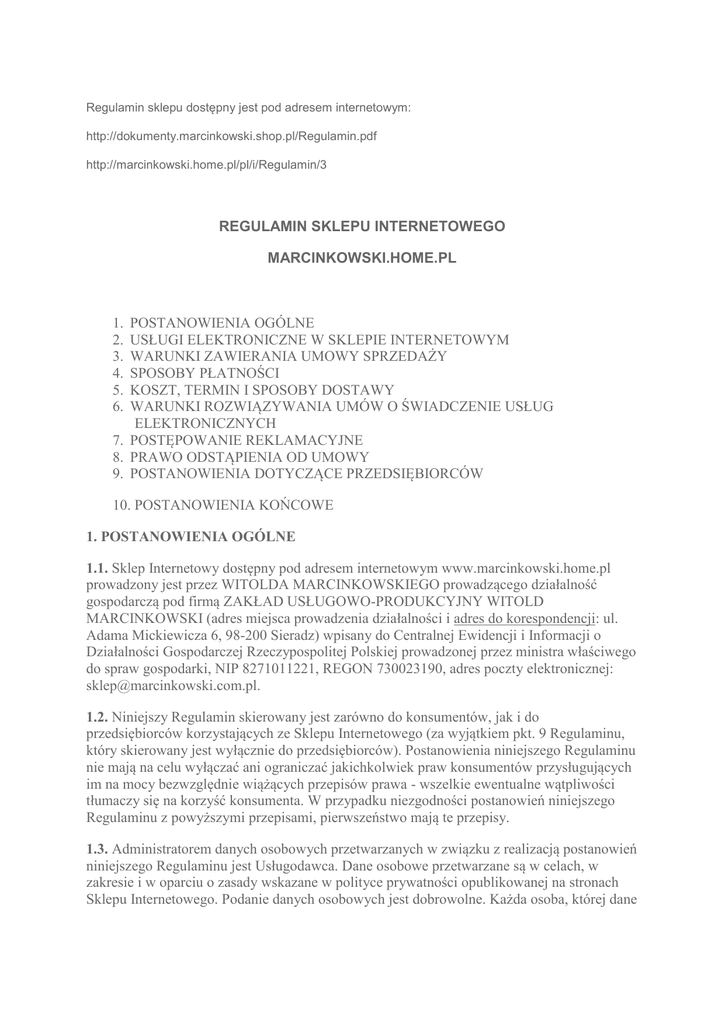 regulamin sklepu internetowego marcinkowski.home.pl 1