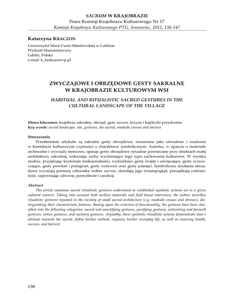 zwyczajowe i obrzędowe gesty sakralne w krajobrazie kulturowym wsi