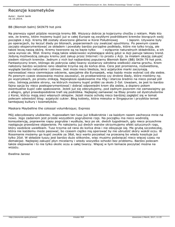 Recenzje kosmetyków - Zespół Szkół Ekonomicznych w Opolu