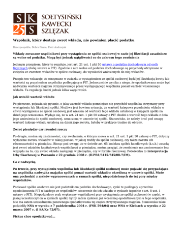 Wspólnik, który dostaje zwrot wkładu, nie powinien płacić podatku