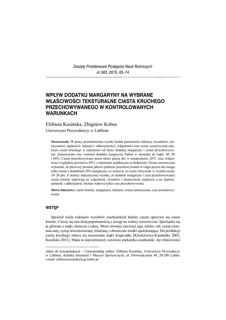 Wpływ dodatku margaryny na wybrane właściwości teksturalne