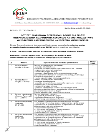 WARUNKÓW OFERTOWYCH BCKUiP DLA CELÓW