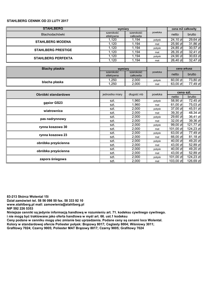CENNIK 9 STYCZEŃ 2017 STAHLBERG