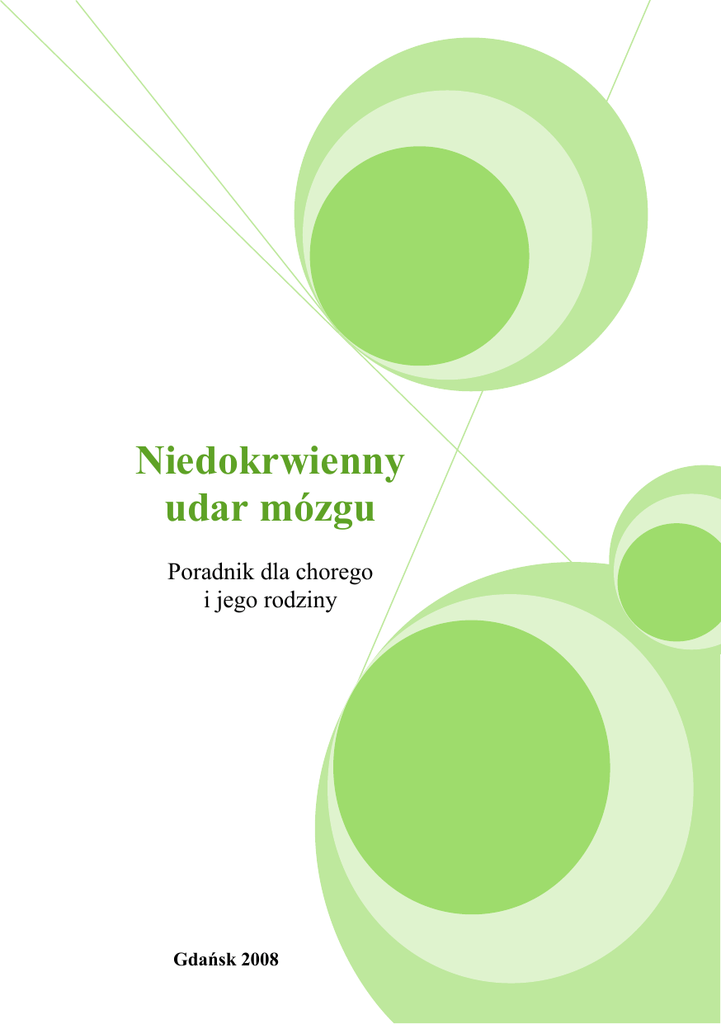 Niedokrwienny udar mózgu Poradnik dla chorego i jego rodziny Gdańsk 2008 Akademia Medyczna w Gdańsku Wydział Nauk o Zdrowiu Oddział Pielęgniarstwo Kierunek Pielęgniarstwo Autorzy: Katarzyna Gdaniec Jerzy Krukowski Grażyna Radtke Marzena Szwedowska Studia „pomostowe” grupa A 2 Spis treści: Niedokrwienny udar mózgu – Jerzy Krukowski ………………………………………...…… 4 Co to jest udar mózgu? ........................................................ 4 Epidemiologia udarów mózgu ............................................. 5 Przyczyny udaru mózgu ...................................................... 6 Czynniki ryzyka udaru mózgu ............................................. 7 Objawy udaru mózgu ........................................................... 8 Co zrobić gdy podejrzewamy udar mózgu? ........................ 9 Skutki udaru mózgu ........................................................... 10 Leczenie udaru mózgu ....................................................... 11 Jak uniknąć udaru mózgu? ................................................ 12 Pielęgnacja chorego w niedokrwiennym udarze mózgu – Grażyna Radtke …………………………………...………... 14 Edukacja z zakresu niedokrwiennego udaru mózgu – Katarzyna Gdaniec ……………………………………...…. 18 Program działań edukacyjnych ........................................... 22 Szczegółowe zadania i zakres edukacji .............................. 23 Rehabilitacja pacjenta w niedokrwiennym udarze mózgu – Marzena Szwedowska ……………………………………… 28 Podstawowe rady dla chorego i jego rodziny: .................... 30 3 Niedokrwienny udar mózgu Jerzy Krukowski Co to jest udar mózgu? Udar mózgu jest groźną chorobą o nagłym początku, która powstaje w wyniku zaburzenia ukrwienia mózgu.1 Udar mózgu jest to nagłe ogniskowe lub uogólnione zaburzenie czynności mózgu utrzymujące się powyżej 24 godzin lub prowadzące do śmierci.2 Budowę mózgu przedstawia Rysunek 1. Rysunek 1. Budowa mózgu źródło: http://portalwiedzy.onet.pl/50786,,,,mozg,haslo.html 1 http://www.poradnikmedyczny.pl/mod/archiwum/6189_udar_mózgu.html 2008-11-21 2 http://www.udarmozgu.pl/ogolne/choroby.html data wejścia 2008-11-21 4 Epidemiologia udarów mózgu Udar mózgu jest trzecią co do częstości przyczyną śmierci i główną przyczyną trwałego kalectwa i braku samodzielności u osób dorosłych. W Polsce rejestruje się około 60 000 nowych zachorowań na udar rocznie. Zapadalność na tę chorobę jest podobna jak w innych krajach europejskich (około 175/100 000 mężczyzn i 125/100 000 kobiet), ale umieralność około udarowa i niesprawność po udarze są znacznie większe.3 3 Kwieciński H.: Intensywna opieka w udarach mózgu. W: Udary naczyniowe mózgu. J. Majkowski (red), Warszawa, PZWL 1998, 164-174. 5 Przyczyny udaru mózgu Przyczyną udaru są zaburzenia krążenia w mózgu. Udar mózgu nazywa się bardzo często wylewem do mózgu, jednak nie jest to precyzyjne określenie. W 80% przypadków udar mózgu wywołany jest niedokrwieniem, czyli zamknięciem naczynia, które doprowadza krew do mózgu. Tylko 20% udarów mózgu wywołane jest krwotokiem bądź to do mózgu, bądź do przestrzeni pomiędzy 4 mózgiem a czaszką. Udar mózgu jest stanem zagrożenia życia i powinien być traktowany przez wszystkie służby medyczne jako wymagający natychmiastowej pomocy i szybkiego postępowania według określonych zasad, podobnie jak w ostrym zawale serca. Każdy chory z podejrzeniem udaru mózgu powinien być jak najszybciej zdiagnozowany w warunkach szpitalnych, a rozpoznanie udaru, niezależnie od nasilenia jego objawów, jest wskazaniem do hospitalizacji w specjalnie do tego celu przeznaczonym oddziale lub pododdziale.5 4 http://www.zdrowie.med.pl/udar/udar01.html data wejścia 2008-11-21 5 http://www.mp.pl/artykuly/index.php?aid=1278&_tc=88FBB150D72C433 9A1DFCB7F37299794 2008-11-22 6 Czynniki ryzyka udaru mózgu Udary mózgu występują przede wszystkim u osób cierpiących na miażdżycę. Wszystkie czynniki wpływające na rozwój miażdżycy, takie jak stres, palenie tytoniu, nadużywanie alkoholu, podwyższony cholesterol, czynniki genetyczne i nadwaga, wysokie ciśnienie czy cukrzyca powodują wzrost ryzyka udarów mózgu.6 6 http://www.punktzdrowia.pl/choroby_dolegliwosci/choroby_ukladu_kraze nia/udar_mozgu/ 7 Objawy udaru mózgu Najczęstszymi objawami udaru mózgu jest nagłe wystąpienie: niedowładu lub porażenia mięśni twarzy, ręki i/lub nogi, najczęściej po jednej stronie ciała, "znieczulenia" twarzy, ręki i/lub nogi, najczęściej po jednej stronie ciała, zaburzeń mowy, z trudnościami w zrozumieniu słów oraz w wypowiadaniu się, zaburzeń widzenia w jednym lub obu oczach, zaburzeń chodzenia z utratą równowagi i zawrotami głowy, silnego bólu głowy bez znanej przyczyny. Objawy udaru zależą od umiejscowienia uszkodzenia w mózgu oraz od jego rozległości. Dlatego u poszczególnych osób objawy mogą się różnić. Udar mózgu często jest niebolesny.7 7 http://www.udarmozgu.pl/dla_dziennikarzy/czynniki.html 2008-11-24 8 Co zrobić gdy podejrzewamy udar mózgu? W celu zapewnienia odpowiedniej szybkości postępowania i transportu do szpitala, przypadki podejrzane o udar mózgu (każde nagłe wystąpienie osłabienia kończyn, zaburzeń mowy lub innych ogniskowych objawów neurologicznych z towarzyszącymi zaburzeniami świadomości lub bez) powinny być zgłaszane bezpośrednio do pogotowia ratunkowego bez konieczności konsultacji lekarza rodzinnego (rejonowego).8 Zapamiętaj! Wymienione objawy są poważnym ostrzeżeniem! Niezwłocznie należy zwrócić się o pomoc do lekarza! Wezwij Pogotowie Ratunkowe - telefon 999. Udar mózgu jest stanem naglącym. Nie czekaj, by zobaczyć, czy objawy ustąpią same! Szybkie rozpoznanie to szansa na skuteczniejsze leczenie. Nawet jeśli objawy u