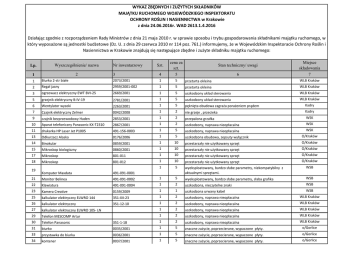WYKAZ ZBĘDNYCH I ZUŻYTYCH SKŁADNIKÓW MAJĄTKU RUCHOMEGO WOJEWÓDZKIEGO INSPEKTORATU OCHRONY ROŚLIN I NASIENNICTWA w Krakowie z dnia 24.06.2016r. WAD 2613.1.4.2016 Działając zgodnie z rozporządzeniem Rady Ministrów z dnia 21 maja 2010 r. w sprawie sposobu i trybu gospodarowania składnikami majątku ruchomego, w który wyposażone są jednostki budżetowe (Dz. U. z dnia 29 czerwca 2010 nr 114 poz. 761.) informujemy, że w Wojewódzkim Inspektoracie Ochrony Roślin i Nasiennictwa w Krakowie znajdują się następujące zbędne i zużyte składniku majątku ruchomego: Wyszczególnienie/ nazwa Lp. 2 Nr inwentarzowy Szt. cena za szt. Stan techniczny/ uwagi 6 Miejsce składowania 3 4 5 1 Biurko 2-str białe 2073/2001 1 5 przetarta okleina WLB Kraków 2 Regał jasny 2959/2001-002 1 5 przetarta okleina WLB Kraków 3 ogrzewacz elektryczny EWT BVI-25 2669/2001 1 5 uszkodzony układ sterowania WLB Kraków 5 uszkodzony układ sterowania WLB Kraków 1 7 5 grzejnik elektryczny B-IV-19 2781/2001 1 6 Wentylator wysoki 2263/2001 1 5 pęknięta obudowa zagraża porażeniem prądem Kadry 7 Czajnik elektryczny Zelmer 0042/2008 1 2 nie grzeje , przecieka Kadry 2 przepalona grzałka WSK 9 czajnik bezprzewodowy Haden 2853/2001 1 10 Aparat telefoniczny Panasonic KX-T2310 2867/2001 1 2 uszkodzony, naprawa nieopłacalna WSK 5 uszkodzony, naprawa nieopłacalna WSK 11 drukarka HP Laser Jet P1005 491-156-0003 1 13 Odkurzacz Alaska 0176/2006 1 5 uszkodzona obudowa, zepsuty wyłącznik O/Kraków 14 Binokular 0859/2001 1 10 przestarzały nie użytkowany sprzęt O/Kraków 10 przestarzały nie użytkowany sprzęt O/Kraków 15 Mikroskop biologiczny 0860/2001 1 17 Mikroskop 801-011 1 10 przestarzały nie użytkowany sprzęt O/Kraków 18 Mikroskop 801-012 1 10 przestarzały nie użytkowany sprzęt O/Kraków 1 5 wyeksploatowany, bardzo słabe parametry, niekompatybilny z aktualnymi sprzętami. WSB 19 21 Komputer Maxdata 491-091-0001 Monitor Belinea 491-091-0002 1 5 wyeksploatowany, bardzo słabe parametry, słaba grafika WSB 2 uszkodzona, nieczytelne znaki WSB WSB 22 Klawiatura 491-091-0004 1 23 Kamera Creative 0159/2009 1 1 uszkodzona urwany kabel 25 kalkulator elektryczny ELWRO 144 351-XII-23 1 2 uszkodzony, naprawa nieopłacalna WLB Kraków 351-12-10 1 2 uszkodzony, naprawa nieopłacalna WLB Kraków 26 kalkulator elektryczny 27 kalkulator elektryczny ELWRO 105- LN 1 2 uszkodzony, naprawa nieopłacalna WLB Kraków 29 Telefon MESCOMP Artur 1 2 uszkodzony, naprawa nieopłacalna WLB Kraków 30 Telefon Panasonic 351-1-18 1 2 uszkodzony, naprawa nieopłacalna WLB Kraków 31 biurko 0035/2001 1 5 znaczne zużycie, poprzecierane, wypaczone płyty. o/Gorlice 5 znaczne zużycie, poprzecierane, wypaczone płyty. o/Gorlice 5 znaczne zużycie, poprzecierane, wypaczone płyty. o/Gorlice 33 przystawka do biurka 0036/2001 1 34 kontener 0037/2001 1 35 regał z barkiem 0038/2001 1 5 znaczne zużycie, poprzecierane, wypaczone płyty. o/Gorlice 37 narożnik 0039/2001 1 5 znaczne zużycie, poprzecierane, wypaczone płyty. o/Gorlice 5 znaczne zużycie, poprzecierane, wypaczone płyty. o/Gorlice 38 regał z szufladami 0040/2001 1 39 szafa ubraniowa 0041/2001 1 5 znaczne zużycie, poprzecierane, wypaczone płyty. o/Gorlice 41 szafa ubraniowa 0042/2001 1 5 znaczne zużycie, poprzecierane, wypaczone płyty. o/Gorlice 5 znaczne zużycie, poprzecierane, wypaczone płyty. o/Gorlice 42 kuchenne szafki stojące 0056/2001 1 43 kuchenne szafki stojące 0181/2001 1 5 znaczne zużycie, poprzecierane, wypaczone płyty. o/Gorlice 45 kuchenne szafki wiszące 0058/2001 1 3 znaczne zużycie, poprzecierane, wypaczone płyty. o/Gorlice 3 znaczne zużycie, poprzecierane, wypaczone płyty. o/Gorlice znaczne zużycie, poprzecierane, wypaczone płyty. o/Gorlice 46 kuchenne szafki wiszące 0086/2001 1 47 kuchenne szafki wiszące 0087/2001 1 3 48 kuchenne szafki wiszące 0088/2001 1 3 50 szafka zlewozmywakowa 0064/2001 1 5 znaczne zużycie, poprzecierane, wypaczone płyty. o/Gorlice 51 wieszak ubraniowy drewniany 1 1 znaczne zużycie nie estetyczny, naprawa nieopłacalna o/Gorlice 1 1 znaczne zużycie nie estetyczny, naprawa nieopłacalna o/Gorlice znaczne zużycie, poprzecierane, wypaczone płyty. o/Gorlice 52 wieszak ubraniowy drewniany 0065/2001 0183/2001 54 drabina malarska drewniana 0004/2001 1 3 zużyta rozchwiana, połamane strzeble o/Gorlice 55 lampka biurkowa 0102/2001 1 1 zużyta o/Gorlice 1 zużyte, popękane o/Gorlice uszkodzony, spękany na całej długości o/Gorlice 56 wiadro plastikowe białe 0162/2001 1 58 waż gumowy 0163/2001 1 1 1 10 59 kuchnia ma ponad 20 lat nie spełnia wymogów bezpieczeństwa o/Gorlice kuchnia gazowa EWA 0169/2001 60 stolik kwadratowy 0170/2001 1 3 uszkodzona płyta, o/Gorlice 62 lustro 0066/2001 1 3 znaczne zużycie warstwy lustrzanej o/Gorlice 63 podgrzewacz akumulacyjny 0002/2001 1 10 zbędny o/Gorlice 64 drukarka igłowa OPTIMUS SA 2400 491-009-0002 1 5 3 uszkodzona, nie drukuje naprawa nie opłacalna wyeksploatowany oraz niesprawny i nie nadaje się do dalszego użytkowania. o/Gorlice 1 o/Gorlice 66 minutnik mechaniczny 67 wiadro budowlane 0031/2001 1 2 wyeksploatowane , peknięte o/Gorlice 68 Fotel biurowy Derma 3446/2001 1 5 o/Gorlice 1 3 bindownica 3515/2001 wyeksploatowany wypadaja kółka wyeksploatowana, niesprawna nie nadaje się do dalszego użytkowania. 70 2477/2001 Komputer się nie włącza, lub po bardzo długim czasie oczekiwania nawet do 1 godziny, oprogramowania nie jest kompatybilne z innym sprzętem. Według opinii informatyków sprzęt nie nadaje się do eksploatacji a koszty 5 jego naprawy przekraczają zdecydowanie jego wartość. 71 72 74 75 76 komputer Hp Ej-600 FS 491-086/0001 monitor Belinea 491-086/0002 klawiatura 491-086/0004 cieplarka 801-074 termometr mleczarski 1522/2004 1 5 1 2 1 5 1 3 wyeksploatowany oraz niesprawny i nie nadaje się do dalszego użytkowania. wyeksploatowana, niesprawna, nie nadaje się do dalszego użytkowania. Wytarte klawisze. wyeksploatowana, niesprawna nie nadaje