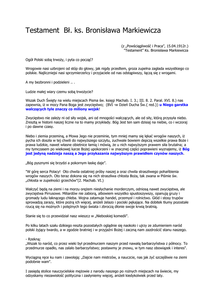 "Testament” Ks. Bronisława Markiewicza