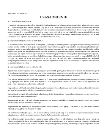 przypomnieć, że R. D. nie tylko przeszedł z zabraną butelką alkoholu przez linię kas, nie płacąc za towar, ale nawet