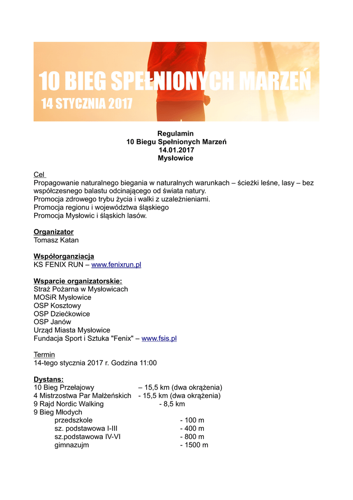 Regulamin 10 Biegu Spełnionych Marzeń 14.01.2017 Mysłowice