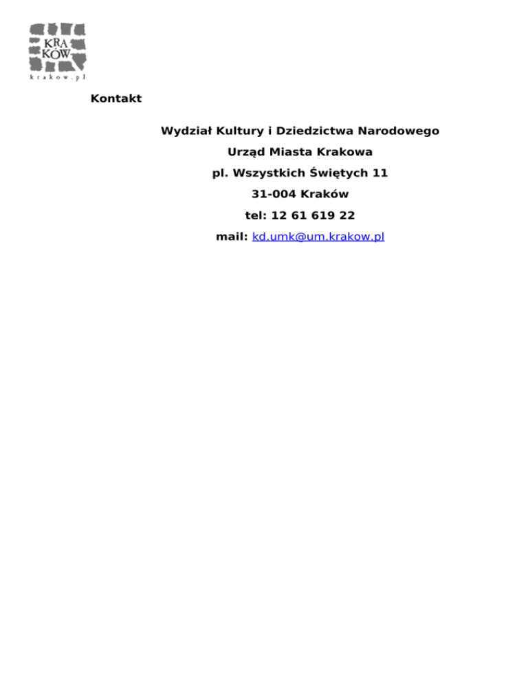 Kontakt Wydział Kultury i Dziedzictwa Narodowego Urząd Miasta