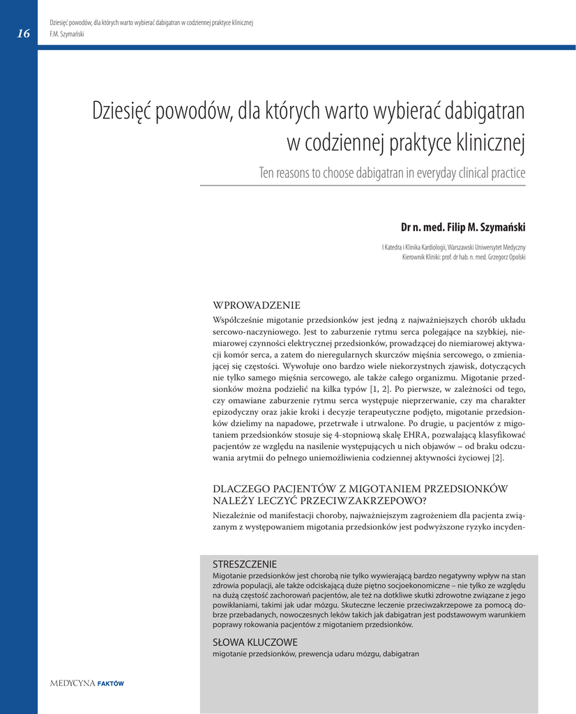Dziesięć powodów, dla których warto wybierać dabigatran