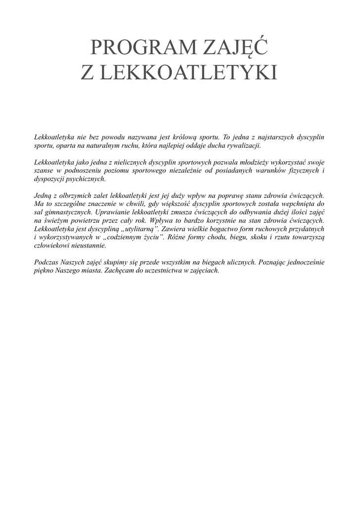 PROGRAM ZAJĘĆ Z LEKKOATLETYKI