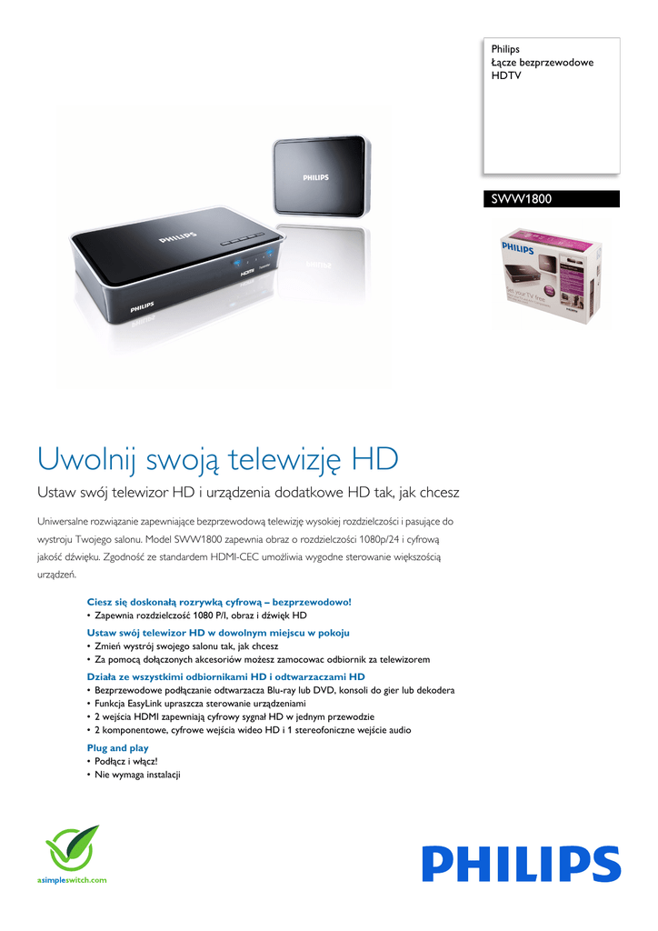 SWW1800/12 Philips Łącze bezprzewodowe HDTV
