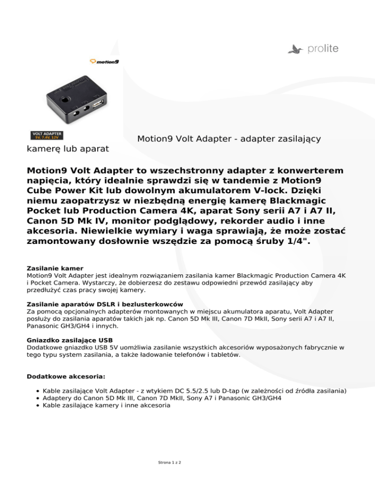 Motion9 Volt Adapter - adapter zasilający kamerę lub aparat