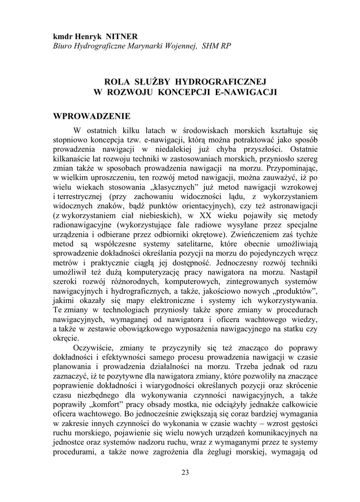 Rola służby hydrograficznej w rozwoju koncepcji e