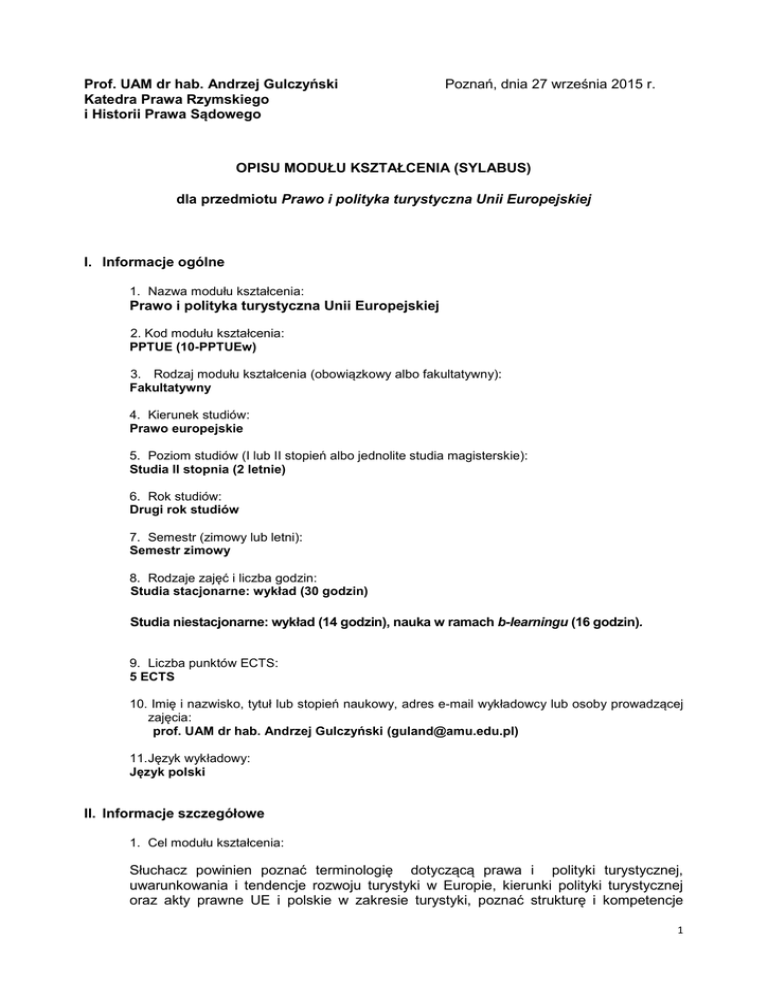 Prawo i polityka turystyczna UE - Wydział Prawa i Administracji UAM