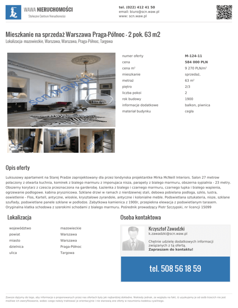 Mieszkanie na sprzedaż Warszawa Praga-Północ 63m2