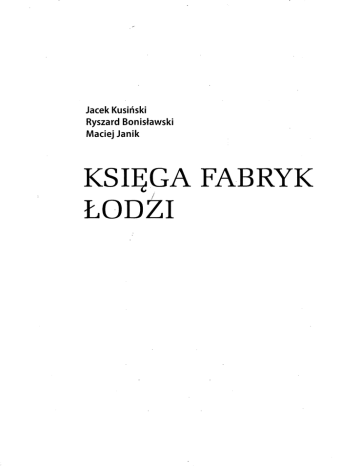 Jacek Kusiński Ryszard Bonisławski Maciej Janik KSIĘGA FABRYK ŁODZI Indeks osób, firm i zakładów Abel Fryderyk 19,312 353,412 Beck Wilhelm Brzoza I., niciarnia 64 Długosz Jan 280 Bednarczyk Józef 308 Budzyner Salem Abel Teodor 129 Beme i Maszycki, tkalnia 464 Buhle Karol Teodor Abramski Michał 158 Bencianowski Moryc 290 Buhle Teodor 308 Dobranicka Maria 74 Adolf Emil i S-ka, fabryka szpul 444 Bennich Karol 170,422 Bukiet Dawid 345 Dobranicki Adolf 302 AEG (Allgemeine Elektrizitats-Gesellschaft), Berendt Adolf 352 Bukiet Józef 232 Dobranicki Bernard 302 koncern elektrotechniczny 6,9 Berenstein Zachariasz 410 Biirgel Aleksander 350 Dobranicki Chaim 74 AgińskiAron 136 Berent Edward . 236 Butschkat Fryderyk Bruno 54 Dobranicki Daniel 74,302 Ajzenberg Abram 190 Berger Izaak 176 Butschkat Gustaw Adolf 54 Dobranicki Henoch Bergsohn Józef 200 Bytomskiej Włady im.. Akcyjne Towarzystwo ' 370 Dobraniccy, rodzina 66 Dobranicka Dorota 404 Abel Karol (Jan) 8 302 74 Dobranicki Jakub 74,302 Berkał Abram 158 Zakłady Przemysłu Bawełnianego 408 Dobranicki Józef 74 „Alba", Zakłady Przemysłu Bawełnianego Berliner J. 281 „Capitol", kino 308 Dobranicki Paweł 302 im. Armii Ludowej 180,210 Berliński Abram 342 „Central", Spółdzielczy Dom Handlowy 232 120 Berman Samuel 72 274 Przemysłowe Markus Kohn 17,168 AlbamSaul Bermann Chil icek 288 230,274 Bertschinger Edwin 424 274 Bertschinger Ernest 424 Bertschinger Henryk 424 Albrecht Juliusz Albrecht Leon Albrecht Ludwik Allart Leon 5,438 Angerstein Stefan 342 „Anilana", Zakłady Włókien Beyerl Karol 38 Bialer Róża 158 Chemicznych 213 Biedermann Alfred 80 Anstadt Helena 330 Biedermann Bruno Otto 81 Biedermann Maryla 81 Anstadt Karol . 5,278,330 Anstadt Karol Ludwik 330 Biedermann Paulina zob. Richter Paulina Anstadt Ludwik 330 Biedermann Paweł Anstadt Teresa zob. Moenke Teresa Biedermann Robert „Arelan", Łódzkie Zakłady Przemysłu Czesankowego „Ariadna", Widzewska Fabryka Nici 230 80, 354 Biedermannowie, rodzina .17 318 „Biedronka", sieć sklepów 200 196 Bielszowski Juliusz 72 Arkuszewski Jan 5,8,198 BierzyńskiW. 112 Arkuszewski Kazimierz 5,8,198 Bigge Krystian 444 Billauer, fabryka pasty 353 Binkowski Michał 350 Ast Alfred Renee . 328 Ast Joanna zob. Zippel Joanna Centrala Handlowa Przemysłu Drzewnego 70 Centralne Biuro Techniczne Przemysłu Maszyn Włókienniczych 361 Centralne Laboratorium Przemysłu Bawełnianego zob. Instytut Architektury Tekstyliów 232 Centralny Ośrodek Badawczo Rozwojowy Technicznych Wyrobów Włókienniczych 72 Centralny Ośrodek Badawczo-Rozwojowy Przemysłu Jedwabniczo-Dekoracyjnego 58 Cerbel i Prenclau, walcownia drutu 52 Chełmiński Franciszek 22,114,198,230,364, 388 Chmielnicki Beniamin 224,418 Chopin Fryderyk 29 Chwat Herman 422 Coats J&P, trust niciarski zob. Łódzka Fabryka Nici Cockerill John 264 Birnbaum Edward 408 Ast Lidia 328 Birnbaum Henryk 332,340 "Cotton", tkalnia mechaniczna 320 Birnbaum Izydor 332,386 „Crespoie", tkalnia mechaniczna 424 Aurich Alban Cohn Ignacy 81 Birnbaum Salomea 332 98 Cukier Ludwik przedsiębiorstwo handlowe 336 Domanowicz Ludwik 292 Domanowicz Rafał 422 Doring August 130 Doring Paweł 130 „Dresso" Zakłady Przemysłu Dziewiarskiego Centralne Laboratorium Przemysłu Odzieżowego 328 budowlanych 22 „Dom Książki", Ast Kamil „Atlas", producent materiałów . Dobrzyński Maurycy 65 38 im.Tadeusza Rychlińskiego 140 Dronsen M. 38 Drukarnia Dziełowa 190 Drutowski Emanuel 464 DyninM. 38 „Dywan Wschodni", Fabryka Dywanów 34 „Dywilan", Fabryka Dywanów 34,340 I Dywizji Kościuszkowskiej im., Zakłady Przemysłu Bawełnianego 164,172 „Dzian" zakłady pończosznicze 98 Dziembor Henryk 118 Eckardt August 100 Eckert i Pflug, zakłady graficzne 7,9 Edelman i Grissel, fabryka trykotów 68 Eisenbraun Artur 108 Eisenbraun Fryderyk 108 Eisenbraun Otto 108 Eisert Emil 44 Birstein Kalman 288 432 Cwajghaft Mordka 190 Blum Jerzy 120 Babiacki Edward 52 Cygan Franciszek 326 BlumLeon 120 Babiacki Marek 353 Czamański Natan 222 BMW (Bayerische Motoren Werke), Balie Józef 336 Czamański Samuel 222 producent silników i samochodów 6, 9 Balie Wilhelm 336 Czapiewski Michał 250 Bodzechowski Joel 354 Banca Commercialeltaliana 6,9 Czerniłowski i Zarzewski, niciarnia 308 Bojankowski Jan 278 Bank Azowsko-Doński 398 CzernysWolf 136 Borensztajn Mordka 394 Bank Gospodarstwa Krajowego 6,9 Bormann Ewald 338 „Czuj-Czyn", Centralna Składnica Harcerska 228 „Elasticana" Zakłady Przemysłu 222 „Dąbrówka", Towarzystwo Akcyjne Przędzalni Wełny Czesankowej 340 „Elektrobudowa", zakłady elektryczne 130 422 Babad Józef Bank Handlowo-Przemysłowy Brand Beniamin 128 5, 8, 50 BrandMoszek 128 8ank Przemysłowy S. A. 271 Braun Gustaw 38 Barciński Henryk 386 Braun i Hurewicz, przędzalnia Barciński Marceli 386 BraunigOtto Bank Handlowy Barciński Salomon Barciński Stefan 332,386 386 Bardowskiego Karola im., Zakłady Przemysłu Wełnianego Eisert Emma zob. Steigert Emma Eisert Karol 62,462 Eisner Abram 340 EisnerWolf 190 Eitingon Borys 38,338 Eitingon Naum 38,338,356,358 „Ekonom", zakłady mechaniczne 92 Dziewiarskiego 182 „Dafco", farbiarnia i wykończalnia 22 Eisner Marian 332 Damski Hirsz Aleksander 42 EmdeAmalia 450 180 Danziger Pharmaceutische Preparate 40 Emde Karol 450 Briner, przędzalnia wełny 288 Daube Adolf Brisk Mendel 136 Daube Klara zob. Jarisch Klara . 274,406,426 „Emfor", Zakłady Przemysłu Odzieżowego „Brokat", Zjednoczone Tkalnie Jedwabiu 185 Daube Oskar 426 Engla Samuela im., 358 78 Brombacher Edmund 166 Daube Ryszard 426 Spółdzielnia Pracy Krawieckiej 5,8,9,218 Browar„Lódzki Zdrój" 278 Deleszyński Z. 190 „Eskimo", Zakłady Przemysłu Bawełnianego Barski Leon 452 Browar„Mieszczański" 208 Delnitz Adolf 368 im. Feliksa Dzierżyńskiego Baruch Salo 48 Browar„Trybunalski" 330 „Delta", Zakłady Przemysłu Dziewiarskiego im.Teodora Duracza 181,280,281,282,366 Desurmont Paweł 5,430 Bari Judei Izydor Baruch Władysław Bau Wilh