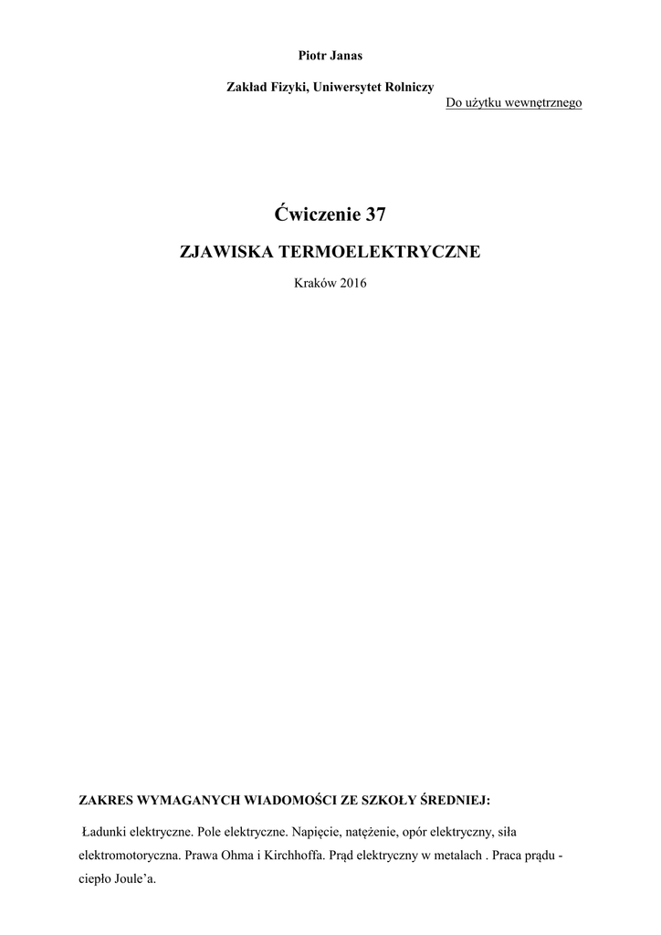 Ćwiczenie 37 ZJAWISKA TERMOELEKTRYCZNE