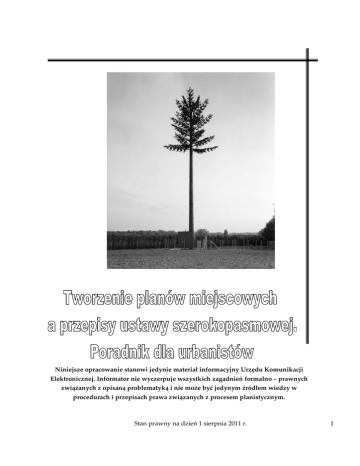 Niniejsze opracowanie stanowi jedynie materiał informacyjny Urzędu Komunikacji Elektronicznej. Informator nie wyczerpuje wszystkich zagadnień formalno – prawnych związanych z opisaną problematyką i nie może być jedynym źródłem wiedzy w procedurach i przepisach prawa związanych z procesem planistycznym. Stan prawny na dzień 1 sierpnia 2011 r. 1 Stan prawny na dzień 1 sierpnia 2011 r. 2 Szanowni Państwo, z nieukrywaną przyjemnością oddajemy do Państwa dyspozycji tę publikację. Poradnik powstał jako zapis przeprowadzonych z inicjatywy Prezes Urzędu Komunikacji Elektronicznej Pani Anny Streżyńskiej spotkań i tzw. warsztatów dla urbanistów, które odbywały się łącznie od października 2010 roku do kwietnia 2011 roku w Gdańsku, Warszawie, Katowicach i Wrocławiu. Oprócz architektów urbanistów brali w nich również udział przedstawiciele wojewódzkich konserwatorów zabytków, regionalnych dyrektorów ochrony środowiska, Krajowej Izby Gospodarczej Elektroniki i Telekomunikacji oraz przedsiębiorców telekomunikacyjnych. Wspólnie staraliśmy się racjonalnie przedyskutować oraz znaleźć satysfakcjonujące uczestników procesu planowania przestrzennego rozwiązania dla przeszkód przy lokalizacji inwestycji celu publicznego z zakresu łączności publicznej. Przedstawiony poradnik stanowi swego rodzaju konkluzję tych rozważań i wskazuje wspólnie wypracowane stanowiska, względem poszczególnych problemów rysujących się przy sporządzaniu miejscowych planów zagospodarowania przestrzennego. Zaproponowane rozwiązania służą pogodzeniu w jak największym stopniu różnych wartości, nierzadko sprzecznych, które należy uwzględniać w procesie planowania przestrzennego, a do których zaliczają się: zachowanie ładu przestrzennego, ochronę naturalnego krajobrazu oraz dążenie do modernizacji technologicznej naszego kraju poprzez rozwój przewodowych i bezprzewodowych sieci telekomunikacyjnych. Poradnik, jak jego tytuł wskazuje, skierowany jest przede wszystkim do architektów urbanistów, którzy przygotowują miejscowe plany zagospodarowania przestrzennego. Zawiera on bowiem cenne wskazówki, jak uniknąć niezgodności poszczególnych postanowień planów miejscowych z art. 46 ust. 1 ustawy z dnia 7 maja 2010 r. o wspieraniu rozwoju usług i sieci telekomunikacyjnych. Mamy jednak nadzieję, że niniejsza publikacja okaże się również pomocna dla inwestorów, projektantów sieci telekomunikacyjnych i wszystkich, którzy chcą świadczyć usługi telekomunikacyjne. Serdecznie dziękujemy przedstawicielom samorządu urbanistów, w szczególności pani Jolancie Przygońskiej oraz panom Markowi Wilandowi, Wiesławowi Zymni, Krzysztofowi Kafka, Jackowi Banduła za cenne inicjatywy, aktywny udział w przygotowaniu warsztatów i determinację Stan prawny na dzień 1 sierpnia 2011 r. 3 w dążeniu do wypracowania wspólnego stanowiska w kwestiach dyskusyjnych, powstających na gruncie planowania przestrzennego. Nasze podziękowania kierujemy również do pana Mirosława Rymera – doradcy prawnego Śląskiego Wojewódzkiego Konserwatora Zabytków oraz starszego inspektora Woj. w Wydziale Nadzoru Prawnego Śląskiego Urzędu Wojewódzkiego w Katowicach za merytoryczny wkład w powstanie publikacji, a także do pana Eugeniusza Gacy, członka Zarządu KIGEiT za niezwykłe zaangażowanie podczas warsztatów i jego cenne uwagi do niniejszego poradnika. Stan prawny na dzień 1 sierpnia 2011 r. 4 I. Część techniczna 6 1. ABC infrastruktury telekomunikacyjnej 6 1.1. Pole elektromagnetyczne (PEM) 6 1.2. Sieć telekomunikacyjna 9 1.3 11 Praktyczny zasięg stacji bazowych w kilometrach 1.4. Propagacja energii sygnału II. 12 2. Słownik 15 Część prawna 26 1. Wymagania ustawy szerokopasmowej a zasady konstytucyjne 26 2. Pojęcie przeznaczenia terenu 38 3. Zestawienie informacji dotyczących relacji przepisów planistycznych ustawy szerokopasmowej z innymi przepisami prawa materialnego 44 4. Przedsięwzięcia oddziaływujące znacząco na środowisko lub potencjalnie mogące znacząco oddziaływać na środowisko 57 5. Uciążliwość inwestycji zamykająca się w granicy terenu, do którego inwestor posiada tytuł prawny 61 6. Postanowienia miejscowego planu dotyczące maksymalnej wysokości zabudowy 63 7. Zakaz zabudowy na terenach rolnych i leśnych 66 8. Kształtowanie formy architektonicznej dla urządzeń telekomunikacyjnych 67 9. Ograniczenia w miejscowych planach zagospodarowania przestrzennego lokalizacji określonych inwestycji, w tym również z zakresu łączności publicznej 71 9.1. Sposób określania ochrony zabytków w miejscowym planie zagospodarowania przestrzennego 72 9.2. Najczęściej spotykane zakazy i ograniczenia w miejscowych planach zagospodarowania przestrzennego związane z ochroną zabytków 75 10. Wykaz źródeł prawa Stan prawny na dzień 1 sierpnia 2011 r. 77 5 I. Część techniczna 1. ABC infrastruktury telekomunikacyjnej. 1.1. Pole elektromagnetyczne (PEM) jest zjawiskiem fizycznym obecnym wokół nas od chwili powstania kosmosu. PEM występuje w całym Wszechświecie. Rozróżniamy dwa rodzaje źródeł tego pola: naturalne oraz związane z działalnością człowieka. Źródła naturalne to przede wszystkim Kosmos i Ziemia. Z punktu widzenia człowieka i jego zdrowia ważniejszy jest podział PEM na pola niejonizujące i pola jonizujące. Różnią się one między sobą miedzy innymi częstotliwościami, a efekty ich działania na otoczenie, w tym organizmy żywe, są diametralnie różne. PEM jonizujące związane jest z pojęciem radioaktywności i wykorzystywane jest głównie w energetyce atomowej i diagnostyce medycznej. „Najczęściej występującymi źródłami sztucznymi są aparaty rentgenowskie, tzw. bomby kobaltowe wykorzystywane w medycynie, izotopy używane np. do wykrywania uszkodzeń wewnętrznych (zmęczenia materiałowego) w konstrukcjach stalowych, lampy UV (światło z zakresu nadfioletu) czy 