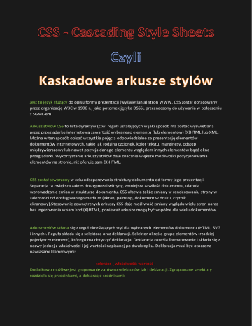 (wyświetlania) stron WWW. CSS został opracowany przez