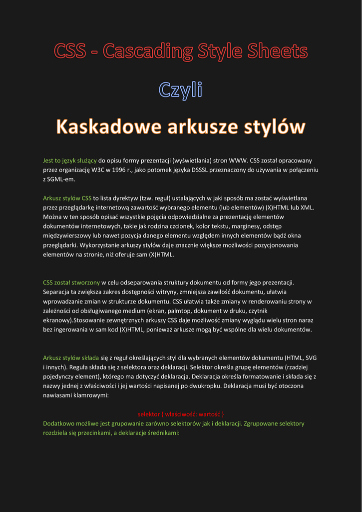 Jest to język służący do opisu formy prezentacji (wyświetlania) stron WWW. CSS został opracowany