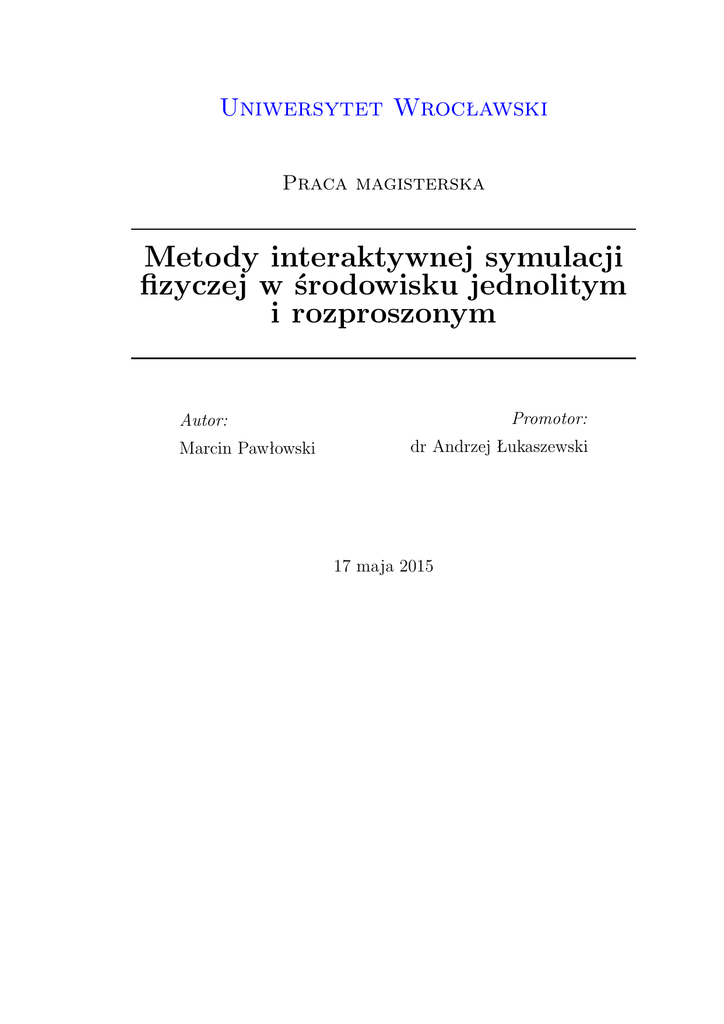 Metody interaktywnej symulacji fizyczej w środowisku jednolitym i