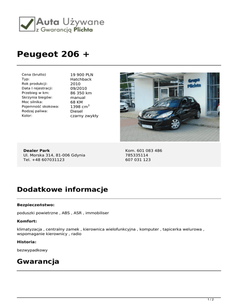 Peugeot 206 + - Auta używane z gwarancją Plichta