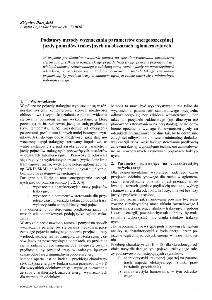 Dostępne publikacje na temat energetycznie oszczędnych jazd dotyczą zasadniczo [1, 2, 3, 4]: