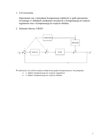1. Cel ćwiczenia Zapoznanie się z metodami kompensacji zakłóceń w pętli sprzęŜenia zwrotnego w układach zamknięto-otwartych z kompensacją na wejściu regulatora oraz z kompensacją na wejściu obiektu. 2. Schemat ideowy URZO W zaleŜności od wyboru miejsca dołączenia gałęzi kompensatora, otrzymujemy: • 1- układ z kompensacją na wejściu regulatora • 2- układ z kompensacją na wejściu obiektu 1 3. Identyfikacja W badania układu regulacji zamknięto-otwartej uŜyliśmy następujących parametrów obiektu i zakłóceń: e −0,5 s obiekt p = , (1 + 45s )(1 + s ) e −0,8 s zakłócenia p = . (1 + 15s )(1 + s ) Aby zidentyfikować obiekt i zakłócenia wykorzystaliśmy następujący schemat: dzięki któremu, wyznaczone zostały przy uŜyciu funkcji kupfmuller(deltaU,t,y) parametry obiektu oraz zakłóceń, pozwalające nam na wyznaczenie transmitancji kompensatora i nastaw regulatora PID. Po uŜyciu tej procedury otrzymaliśmy poniŜsze wyniki dla naszego obiektu i zakłóceń: Obiekt τ = 2,3925 T = 48,2879 Km = 1,00 Zakłócenia τ = 2,5028 T = 18,2302 Kz = 1,001 1 • e −2, 4 km = 48,3 + 1 1 • e −2,5 kz = 18,2 + 1 Nastawy regulatora PID zostały wyznaczone z następujących załoŜeń wykorzystując parametry modelu: Kpid = 1,2 • T/( τ*Km) TIpid = 2 • τ TDpid = 0,4 • τ Kpid = 22,2013 TIpid = 4,7850 TDpid = 0,8852 2 co umoŜliwiło wyznaczenie jego transmitancji. Przedstawia się ona następująco: 1 + 0,89 • s ) 4,8 • s kr = 19,6526 • s 2 + 22,2013 • s + 4,6398 kr = 22,2 • (1 + 4. Dobór kompensatorów. Układ regulacji zamknięto-otwarty moŜe być wykorzystany z kompensacją na wejściu regulatora, jak i na wejściu obiektu, co przedstawione zostało na poniŜszych rysunkach. W zaleŜności od zastosowanej pracy kompensatora, jego transmitancja zostaje wyznaczona w następujący sposób: -kompensator podłączony na wejście regulatora (rysunek z lewej strony) Kk = Kz 1 • Km Kr -kompensator podłączony na wejście obiektu (rysunek z prawej strony) Kk = Kz Km 3 Wykorzystując dane otrzymane podczas identyfikacji obiektu i zakłóceń, po podstawieniu do pierwszego przypadku, otrzymaliśmy następującą transmitancję kompensatora; 1 • e −2,5 s Kz 1 1 48,29 s + 1 1 18,23s + 1 Kk = • = • = e −0,16 s • 2, 4 Km Kr 18,23s + 1 1• e 1 1 22,21 + + 0,889 s 22,21 + + 0,889 s 48,29 s + 1 4,78s 4,78s dla drugiego przypadku, transmitancja kompensatora pomija człon 1 co Kr daje nam następujący wynik: 1 • e −2,5 s Kz 18,23s + 1 48,29s + 1 Kk = = = e − 0,16 s 2, 4 Km 18,23s + 1 1• e 48,29s + 1 5. Symulacja układów regulacji zamknięto-otwartej. Pierwszy zasymulowany został obiekt z regulatorem bez uŜycia kompensatora, wykorzystaliśmy do tego następujący układ: 4 dało to nam odpowiedź układu na skok jednostkowy: W kolejnym punkcie zastosowany został układ z kompensatorem podłączonym na wejście regulatora: 5 wynikiem czego jest poniŜsza odpowiedz układu: Kolejną rzeczą, którą mieliśmy zasymulować, było zastosowanie kompensatora na wejściu obiektu: 6 co dało następującą odpowiedź układu z regulacją zamknięto-otwartą: 6. Odpowiedź URZO na zakłócenia sinusoidalne, prostokątne, trójkątne oraz impulsowe. Odpowiedz URZO na zakłócenia sinusoidalne: 7 Odpowiedz URZO na zakłócenia prostokątne: odpowiedz URZO na zakłócenia trójkątne: 8 odpowiedz URZO na zakłócenia impulsowe: 7. Wnioski. Jak daje się zauwaŜyć układ regulacji zamknięto-otwarty najbardziej niweluje wpływ zakłóceń, przez zastosowanie kompensatora podłączonego na wejściu obiektu. Obrazują to nam powyŜsze symulacje, które za kaŜdym razem udowadniają jego niezawodność działania przy róŜnych rodzajach zakłóceń. Kompensator podłączony do wejścia regulatora nie oddziałuje na zmniejszenie wpływu zakłóceń, lecz wzmacnia je, przez co układ zachowuje się duŜo gorzej w porównaniu do pracy samego regulatora PID bez zastosowania kompensatora. Minusem kompensacji jest to, iŜ w celu dobrania odpowiedniego kompensatora, naleŜy wykonać sporą liczbę obliczeń matematycznych. Ponadto kompensator naleŜy obliczyć ponownie po wykonaniu zmian w układzie. Mimo to metoda kompensacji w układzie zamknięto- otwartym spełnia w dobry sposób postawione przed nią zadanie. 9
