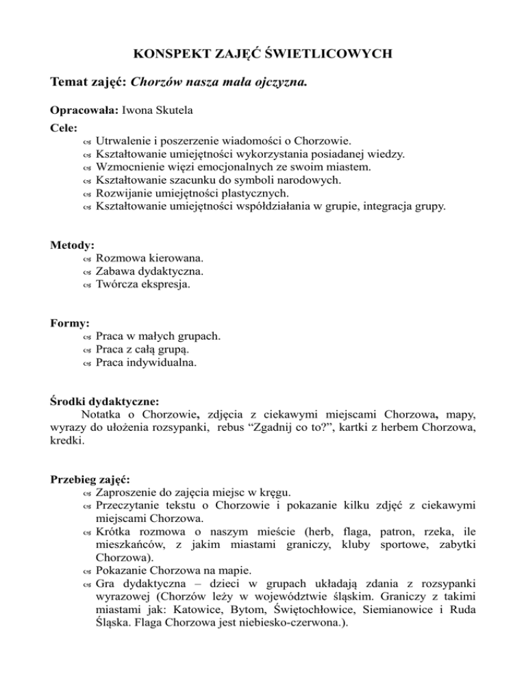 Konspekt zajęć świetlicowych Chorzów nasza mała