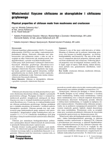 Właściwości Fizyczne chitozanu ze skorupiaków i chitozanu