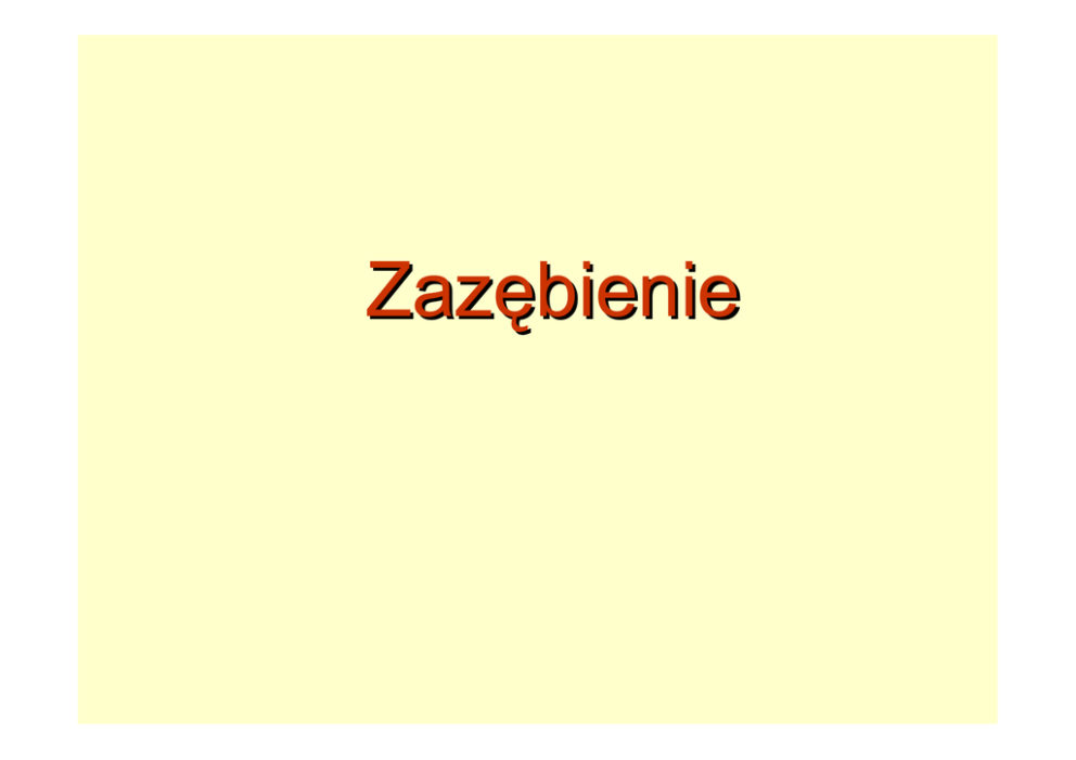 Zazębienie Jak już wzmiankowano, kształt zarysu zęba może być dowolny. Jednakże nie wszystkie zarysy spełniają podstawową zasadę zazębienia (zasadę Willis’a), ‘prosta normalna do boku zęba w punkcie styku zębów kół współpracujących musi przechodzić przez punkt styku kół tocznych’. Aby dwa zarysy współpracujących ze sobą zębów miały wspólną normalną w punkcie ich styku to muszą być one utworzone przez to samo koło odtaczające. Warunek te spełniają zarysy utworzone przez krzywe cykliczne, tj. różnego rodzaju cykloidy oraz ewolwenta koła. Aby dwa zarysy współpracujących ze sobą zębów miały wspólną normalną w punkcie ich styku to muszą być one utworzone przez to samo koło odtaczające. W przypadku zarysu cykloidalnego koło odtaczające dla współpracujących zarysów musi mieć tę samą średnicę. epicykloida ρ ρ hipocykloida wspólna normalna do zarysów W przypadku zarysu ewolwentowego kołem odtaczającym jest linia prosta, a więc ten warunek zawsze jest spełniony. koło odtaczające o promieniu równym ∞ ZAZĘBIENIE EWOLWENTOWE W zazębieniu ewolwentowym zarysy boków współpracujących zębów są utworzone przez odtaczanie linii prostej po kole zasadniczym. Oznacza to, że zarysy boków współpracujących zębów są utworzone przez to samo koło odtaczające (o promieniu ρ = ∞), a więc mają one wspólną normalną w punkcie ich styku. W ten sposób został spełniony warunek podstawowej zasady zazębienia: ‘prosta normalna do boku zęba w punkcie styku zębów kół współpracujących musi przechodzić przez punkt styku kół tocznych’. CECHY ZAZĘBIENIA EWOLWENTOWEGO 1. Zarys boku zęba ¾ jako zarys boku zęba wykorzystywany jest odcinek ewolwenty, ¾ początek łuku ewolwenty możliwy do wykorzystania jako zarys ewolwentowy znajduje się na kole zasadniczym, ¾ współpracujące części ewolwenty powstają tylko na odcinku zarysu ponad okręgami zasadniczymi, ¾ część zarysu poniżej okręgu zasadniczego wykonywana jest jako krzywa przejściowa (może ona być dowolna, ale taka aby umożliwiła przejście wierzchołka zęba i jednocześnie nie powodowała zmniejszenia grubości zęba i jego osłabienia przy podstawie). CECHY ZAZĘBIENIA EWOLWENTOWEGO 1. Zarys boku zęba ¾ jako zarys boku zęba wykorzystywany jest odcinek ewolwenty, ¾ początek łuku ewolwenty możliwy do wykorzystania jako zarys ewolwentowy znajduje się na kole zasadniczym, ¾ współpracujące części ewolwenty powstają tylko na odcinku zarysu ponad okręgami zasadniczymi, ¾ część zarysu poniżej okręgu zasadniczego wykonywana jest jako krzywa przejściowa (może ona być dowolna, ale taka aby umożliwiła przejście wierzchołka zęba i jednocześnie nie powodowała zmniejszenia grubości zęba i jego osłabienia przy podstawie). ewolwenta koło dna wrębów koło zasadnicze rz df 0 CECHY ZAZĘBIENIA EWOLWENTOWEGO 1. Zarys boku zęba ¾ jako zarys boku zęba wykorzystywany jest odcinek ewolwenty, ¾ początek łuku ewolwenty możliwy do wykorzystania jako zarys ewolwentowy znajduje się na kole zasadniczym, ¾ współpracujące części ewolwenty powstają tylko na odcinku zarysu ponad okręgami zasadniczymi, ¾ część zarysu poniżej okręgu zasadniczego wykonywana jest jako krzywa przejściowa (może ona być dowolna, ale taka aby umożliwiła przejście wierzchołka zęba i jednocześnie nie powodowała zmniejszenia grubości zęba i jego osłabienia przy podstawie). ewolwenta koło dna wrębów koło zasadnicze rz df 0 CECHY ZAZĘBIENIA EWOLWENTOWEGO 1. Zarys boku zęba ¾ jako zarys boku zęba wykorzystywany jest odcinek ewolwenty, ¾ początek łuku ewolwenty możliwy do wykorzystania jako zarys ewolwentowy znajduje się na kole zasadniczym, ¾ współpracujące części ewolwenty powstają tylko na odcinku zarysu ponad okręgami zasadniczymi, ¾ część zarysu poniżej okręgu zasadniczego wykonywana jest jako krzywa przejściowa (może ona być dowolna, ale taka aby umożliwiła przejście wierzchołka zęba i jednocześnie nie powodowała zmniejszenia grubości zęba i jego osłabienia przy podstawie). ewolwenta koło dna wrębów koło zasadnicze rz df 0 CECHY ZAZĘBIENIA EWOLWENTOWEGO 1. Zarys boku zęba ¾ jako zarys boku zęba wykorzystywany jest odcinek ewolwenty, ¾ początek łuku ewolwenty możliwy do wykorzystania jako zarys ewolwentowy znajduje się na kole zasadniczym, ¾ współpracujące części ewolwenty powstają tylko na odcinku zarysu ponad okręgami zasadniczymi, ¾ część zarysu poniżej okręgu zasadniczego wykonywana jest jako krzywa przejściowa (może ona być dowolna, ale taka aby umożliwiła przejście wierzchołka zęba i jednocześnie nie powodowała zmniejszenia grubości zęba i jego osłabienia przy podstawie). odcinek ewolwenty wykorzystany jako zarys koło zasadnicze ewolwenta koło odtaczające krzywa przejściowa odcinek ewolwenty wykorzystany jako zarys koło zasadnicze ewolwenta krzywa przejściowa 2. Linia przyporu ¾ linia przyporu jest linią prostą, ¾ linia przyporu jest styczną do kół zasadniczych, przechodzącą przez centralny biegun zazębienia C, ¾ linia przyporu jest nachyloną do stycznej poprowadzonej w punkcie styku kół tocznych pod kątem α. 2. Linia przyporu ¾ linia przyporu jest linią prostą, ¾ linia przyporu jest styczną do kół zasadniczych, przechodzącą przez centralny biegun zazębienia C, ¾ linia przyporu jest nachyloną do stycznej poprowadzonej w punkcie styku kół tocznych pod kątem α. KT1 KZ1 O1 O2 linia przyporu KZ2 KT2 2. Linia przyporu ¾ linia przyporu jest linią prostą, ¾ linia przyporu jest styczną do kół zasadniczych, przechodzącą przez centralny biegun zazębienia C, ¾ linia przyporu jest nachyloną do stycznej poprowadzonej w punkcie styku kół tocznych pod kątem α. KT1 KZ1 O1 linia przyporu N1 C N2 O2 KZ2 KT2 2. Linia przyporu ¾ linia przyporu jest linią prostą, ¾ linia przyporu jest styczną do