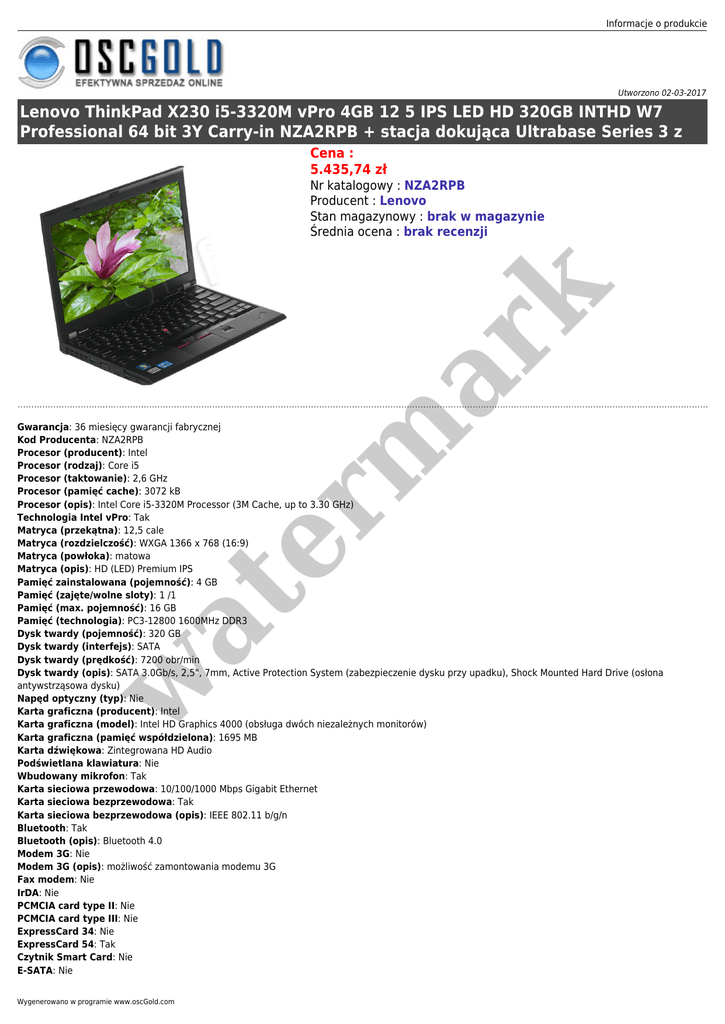 Lenovo ThinkPad X230 i5-3320M vPro 4GB 12 5 IPS LED HD