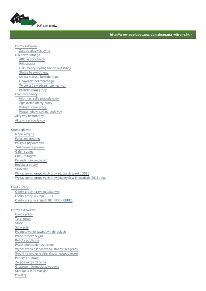 Mapa witryny - Powiatowy Urząd Pracy w Lubaczowie