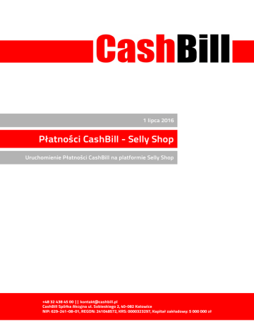 1 lipca 2016 Płatności CashBill - Selly Shop Uruchomienie Płatności CashBill na platformie Selly Shop +48 32 438 45 00 || [email protected] CashBill Spółka Akcyjna ul. Sobieskiego 2, 40-082 Katowice NIP: 629-241-08-01, REGON: 241048572, KRS: 0000323297, Kapitał zakładowy: 5 000 000 zł Płatności CashBill - Selly Shop Spis treści 1 Płatności CashBill na platformie Selly Shop.................................................................................3 2 Rejestracja i weryfikacja Sprzedawcy........................................................................................... 3 3 Uruchomienie Płatności CashBill.................................................................................................. 3 4 Promocja dla klientów Selly Shop................................................................................................. 6 5 Opłaty............................................................................................................................................... 7 6 Optymalizacja prowizji................................................................................................................... 8 7 Kanały płatności............................................................................................................................. 9 7.1 Przelewy bankowe (mechanizm Pay-By-Link).......................................................................9 7.2 Przelewy bankowe................................................................................................................... 10 8 Kontakt.......................................................................................................................................... 11 2 Płatności CashBill - Selly Shop 1 Płatności CashBill na platformie Selly Shop Dzięki współpracy pomiędzy CashBill S.A., a platformą sklepów internetowych Selly Shop, moduł Płatności CashBill jest standardowo dostępny dla wszystkich użytkowników korzystających z platformy sklepowej Selly Shop. Uruchomienie Płatności CashBill wymaga jedynie założenia konta w panelu CashBill. 2 Rejestracja i weryfikacja Sprzedawcy Na stronie www.cashbill.pl należy kliknąć Rejestracja i uzupełnić krótki formularz. Po potwierdzeniu adresu e-mail pozostaje tylko uzupełnić dane konta zgodnie z instrukcjami i przejść przez proces weryfikacji. Sam proces weryfikacji polega na wykonaniu przelewu bankowego według pojawiających się wskazówek. Natychmiast po pozytywnej weryfikacji można przystąpić do uruchomienia Płatności CashBill. 3 Uruchomienie Płatności CashBill Pierwszym etapem uruchomienia Płatności Cashbill w sklepie internetowym Selly Shop jest założenie Punktu Płatności w panelu administracyjnym CashBill. W celu udostępnienia swoim klientom możliwości wykonania dowolnej płatności za towary lub usługi w sklepie internetowym Selly Shop, tworząc nowy Punkt Płatności należy wybrać opcję Punkt Płatności Sklep Internetowy. W formularzu zgłoszenia sklepu internetowego należy określić następujące parametry: Rodzaj interfejsu komunikacji Web Service Adres sklepu Adres strony głównej sklepu, prezentowany klientowi w procesie płatności Nazwa sklepu Nazwa sklepu, wyświetlana klientowi podczas dokonywania płatności Adres serwerowego potwierdzenia transakcji Adres, należy pobrać z konfiguracji modułu CashBill w panelu Selly Shop Uruchomienie Płatności CashBill 3 Płatności CashBill - Selly Shop Formularz zgłoszenia sklepu internetowego Złożenie wniosku o uruchomienie usługi następuje poprzez przycisk uruchom usługę. Ze względu na wymogi nakładane przez instytucje nadzoru finansowego, każdorazowe uruchomienie nowego sklepu internetowego wymaga przeprowadzenia procesu weryfikacji. Proces przeprowadzany jest przez personel systemu CashBill po każdym zgłoszeniu nowego Punktu Płatności i zwykle trwa do jednego dnia roboczego. Do momentu zakończenia procesu weryfikacji, Punkt Płatności działa jedynie w trybie testowym. Uruchomienie Płatności CashBill 4 Płatności CashBill - Selly Shop Po weryfikacji Punktu Płatności w CashBill, skonfiguruj Płatności CashBill w panelu Selly Shop w następujący sposób. W konfiguracji modułu CashBill należy wypełnić pola: Identyfikator Punktu Płatności pobierz z panelu CashBill Klucz Punktu Płatności pobierz z panelu CashBill W konfiguracji form płatności (Konfiguracja → Formy płatności) należy zaznaczyć płatność Płatność elektroniczna CashBill jako aktywny i zatwierdzić przyciskiem Zapisz. Uruchomienie Płatności CashBill 5 Płatności CashBill - Selly Shop 4 Promocja dla klientów Selly Shop Prowizje za obsługę transakcji w ramach pośrednictwa finansowego świadczonego przez CashBill S.A. na rzecz Akceptanta. Obsługa płatności kartami płatniczymi realizowana jest przy współpracy z firmą First Data Polska S.A. (Polcard). Kanał płatności Przelewy bankowe 0,65% Przelewy bankowe (mechanizm Pay-By-Link) 1,9% BLIK 0,99% Karty płatnicze (VISA, MasterCard) 0,99%* Płatności PayPal * Prowizja 0% / prowizję pobiera PayPal [załóż konto] Zgodnie z ustawą z dnia 19.08.2011 r. o usługach płatniczych, informujemy, że na wysokość Prowizji od Transakcji (zwanej w ustawie "opłatą akceptanta") składają się: opłata interchange ( IF ) - ustalana przez Międzynarodowe Organizacje Płatnicze i uiszczana przez agenta rozliczeniowego na rzecz wydawcy karty płatniczej, której wysokość wskazana jest na stronach internetowych: - Visa: http://www.visaeurope.com/en/about_us/our_business/fees_and_interchange.aspx - MasterCard: http://www.mastercard.com/us/company/en/whatwedo/interchange/Country.html opłata systemowa ( OS ) - ustalana przez Międzynarodowe Organizacje Płatnicze i stanowiąca ich przychód, której wysokość wskazana jest na stronach internetowych: - Visa: https://www.visa.pl/media/images/fees%20to%20visa%20europe%20payable%20by%20acquirers-26-1692