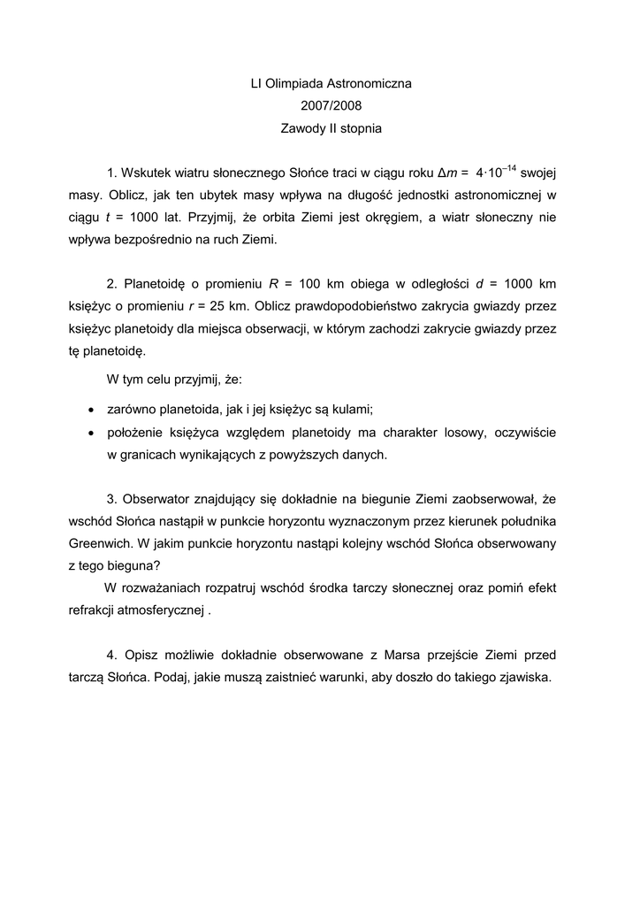 Zadania zawodów II stopnia LI Olimpiady Astronomicznej