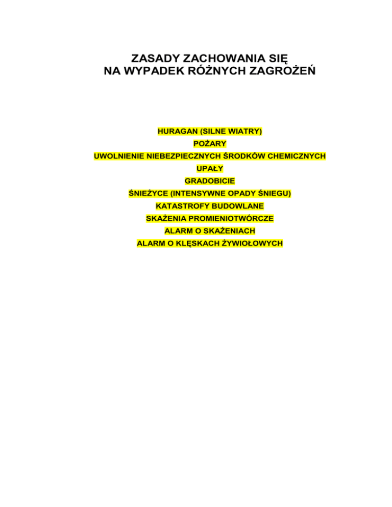 ZASADY ZACHOWANIA SIĘ NA WYPADEK RÓŻNYCH ZAGROŻEŃ