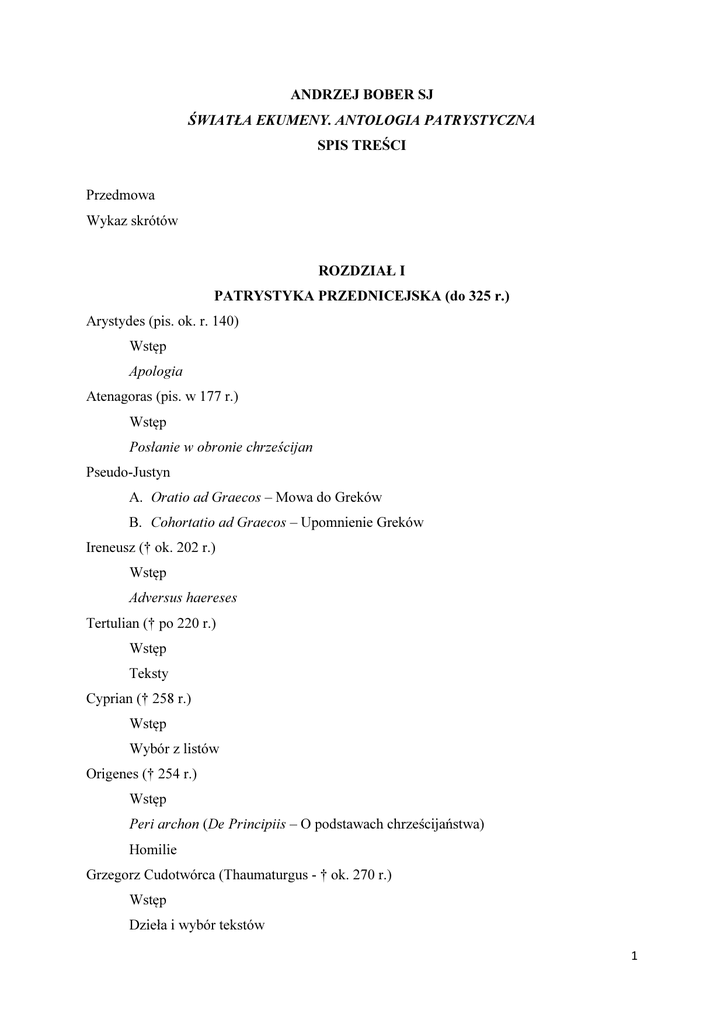 ANDRZEJ BOBER SJ ŚWIATŁA EKUMENY. ANTOLOGIA