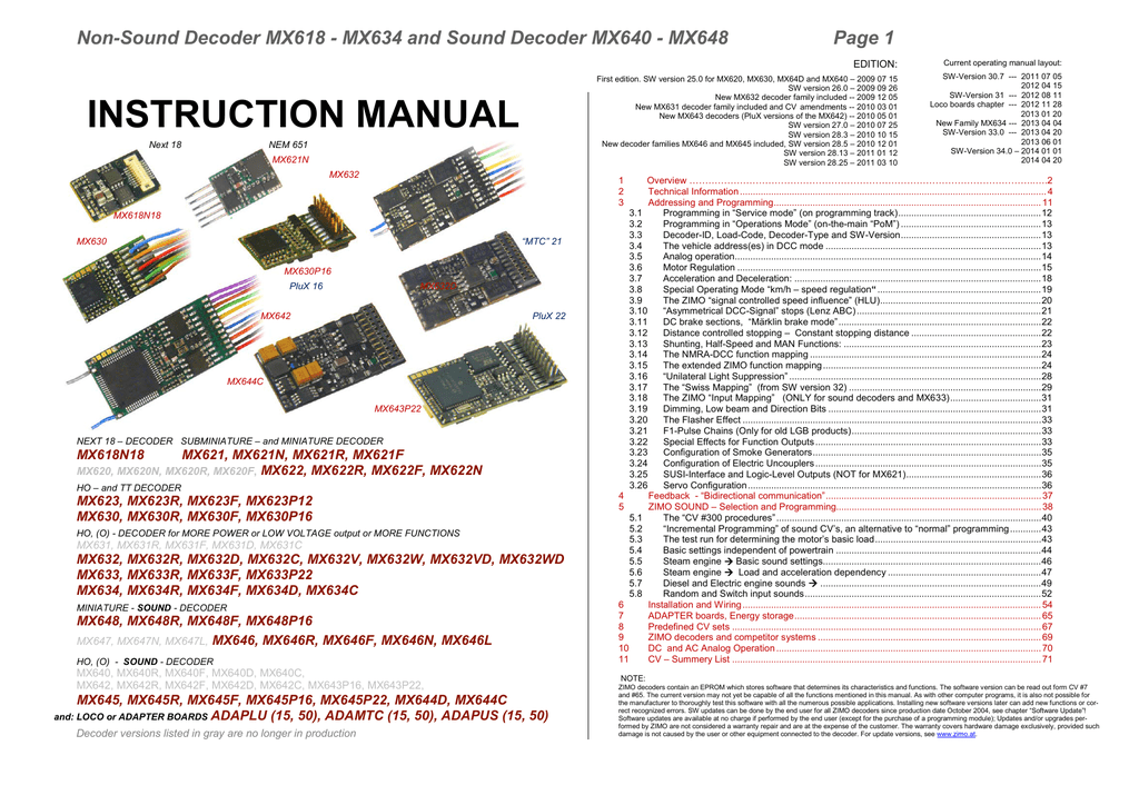 Non-Sound Decoder MX618 - MX634 and Sound Decoder MX640 - MX648